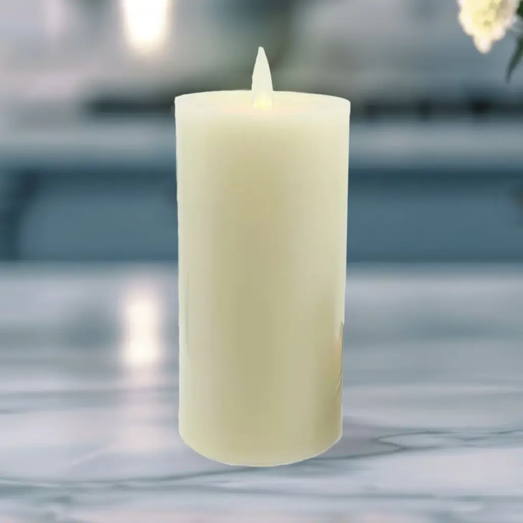 Pacific Accents 3" X 6" Moving Flame Flameless Wax Pillar Candle - Ivory