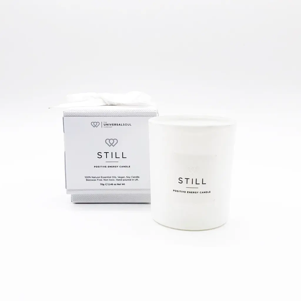The miniature version of our Positive Energy Candle, also in signature fragrance STILL, in a stylish snow white. Grounding, sensual base notes of patchouli, relaxing middle notes of lavendin & uplifting delicate top notes transport you to the ultimate place of luxury & calm. A beautiful soy blend candle for anyone looking for a cleaner, non-toxic candle, with a stylish & elegant look. "Simply addictive"