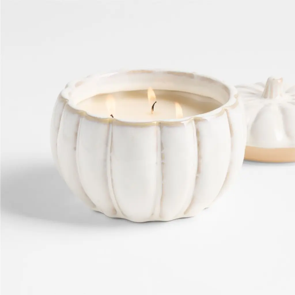 Our pumpkin candle makes a charming addition to your autumn, Halloween and Thanksgiving decoror a sweetly seasonal gift for the holiday host. Creamy glaze coats the ceramic vessel, evoking the look of heirloom pumpkins and revealing warm glimpses of the clay below. Scented with our signature Harvest fragrance, the candle infuses the air with the sweetness of caramel, brown sugar, pumpkin and vanilla and the spicy coziness of nutmeg and cinnamon.