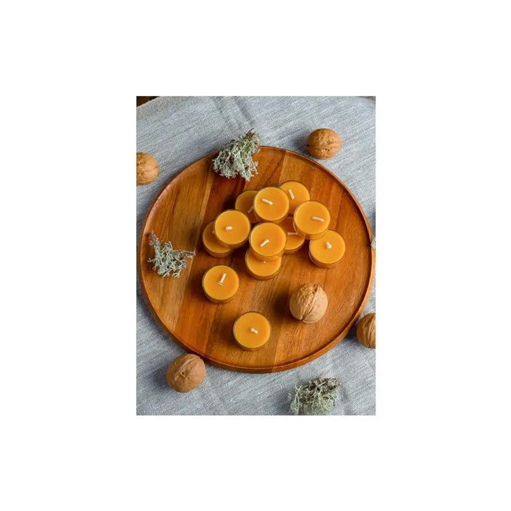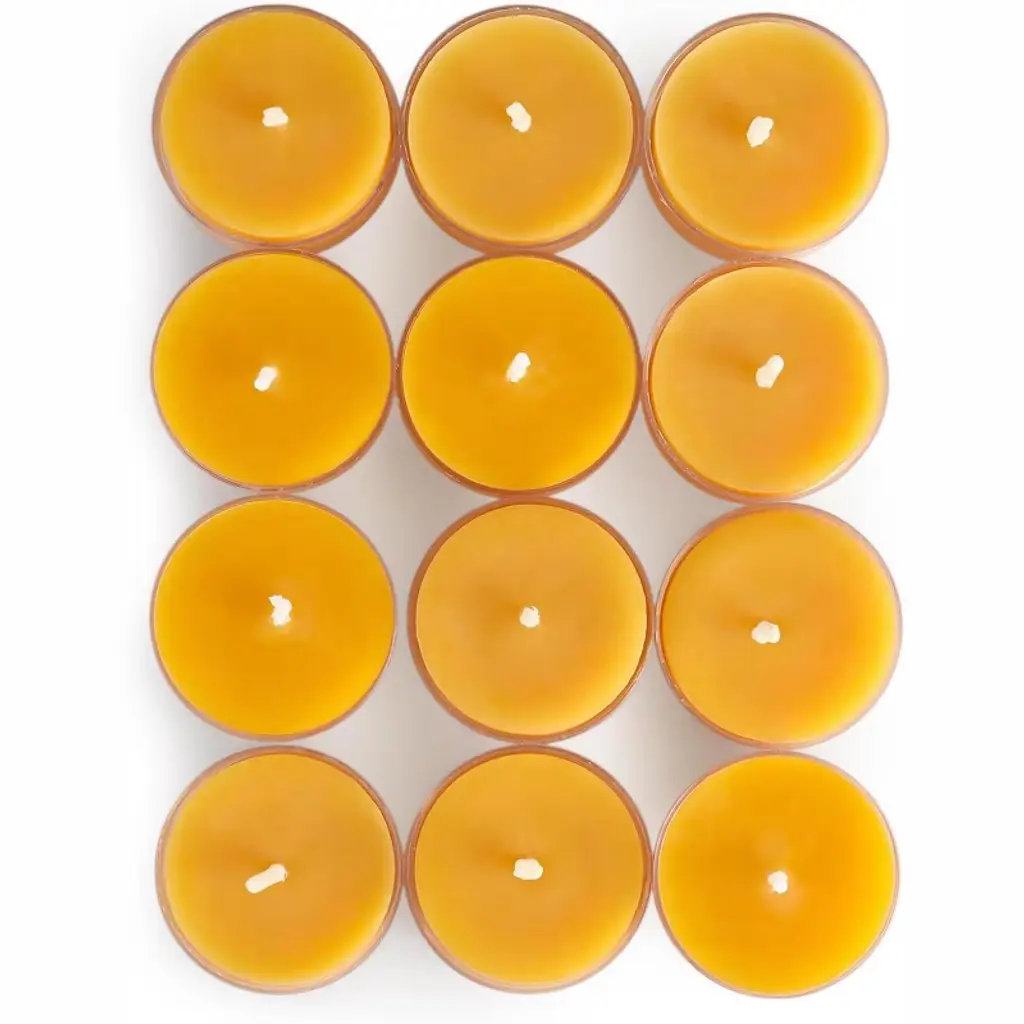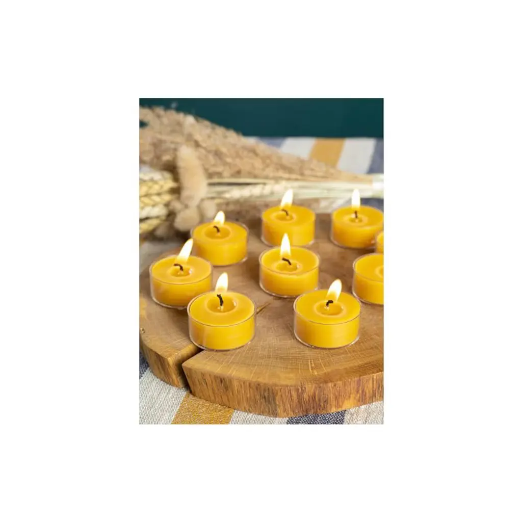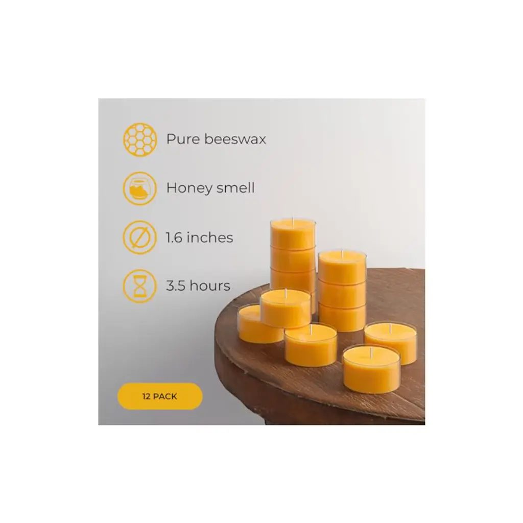 Pure Beeswax Tea Lights - Immerse yourself in the soothing ambiance of beeswax tea candles yellow. Handcrafted from natural honey yellow beeswax, these clean non toxic candles emit a warm, natural glow that enhances any setting. Each beeswax candle set contains 12 meticulously crafted organic candles, perfect for adding a touch of elegance to your home decor. With dimensions of 0.7 inches in height and 1.6 inches in diameter, these small candles offer a burning time of up to 3.5 hours.
