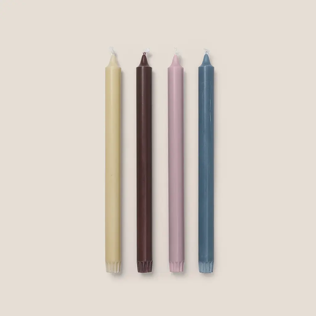 Looking for simple, slim, and sustainable candles to adorn your table or mantelpiece? The Pure Candles from ferm LIVING are the answer. The set includes four candles in earthy or playful colors, thoughtfully curated to add a touch of elegance to your interior. Crafted with care from pure stearin wax, these candles are a responsible choice, certified by the Nordic Swan Ecolabel, providing an eco-friendly alternative to conventional paraffin candles. Enjoy approximately 11 hours of radiant ambiance with each candle or keep them for display.