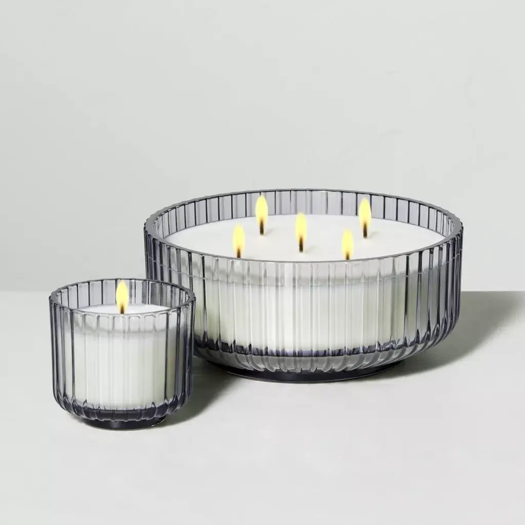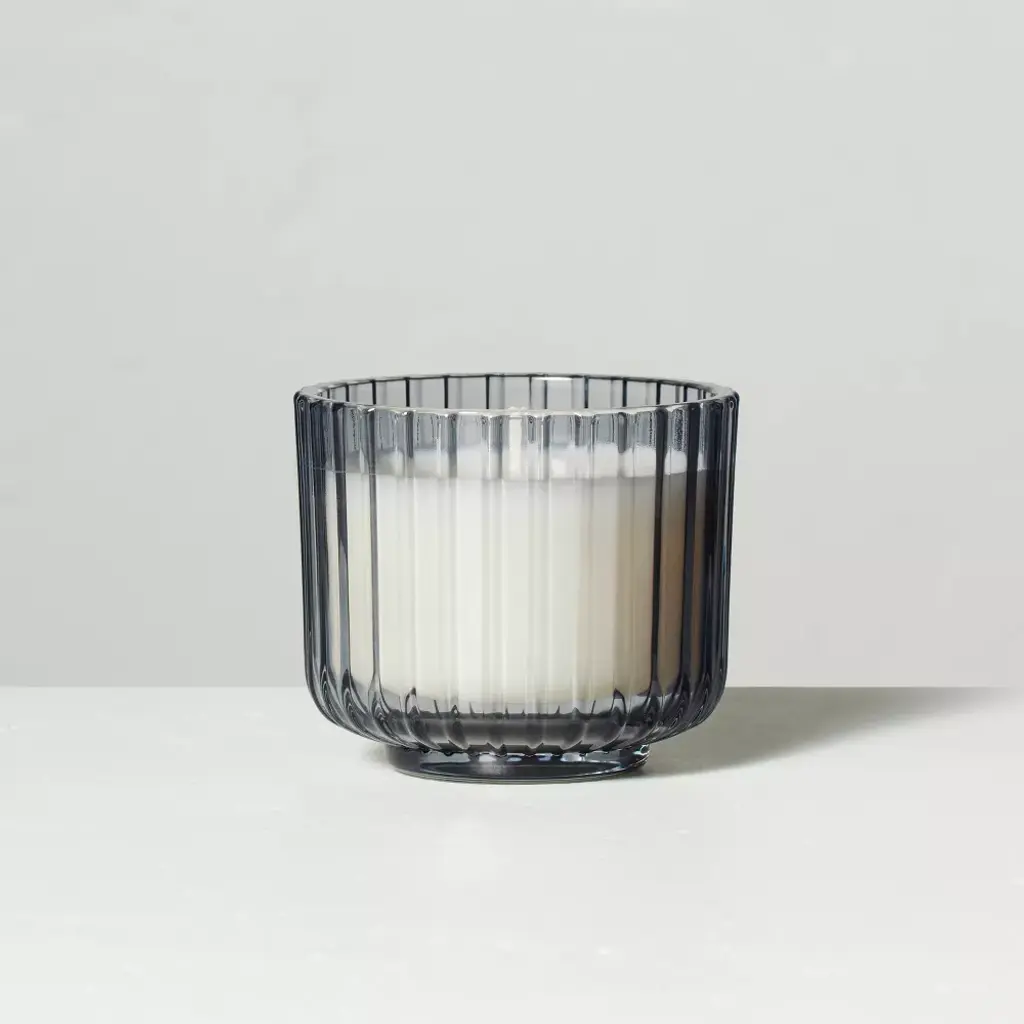 Create a warm and welcoming atmosphere at home with this Ribbed Glass Cashmere & Suede Jar Candle Gray from Hearth & Hand™ with Magnolia. This candle is infused with notes of leather to fill your abode with rejuvenating fragrances, and comes in a ribbed glass jar for a gorgeous look. You can store this jar candle and light it for when you need a well-deserved break. Hearth & Hand™ with Magnolia: Gather • Create • Enjoy