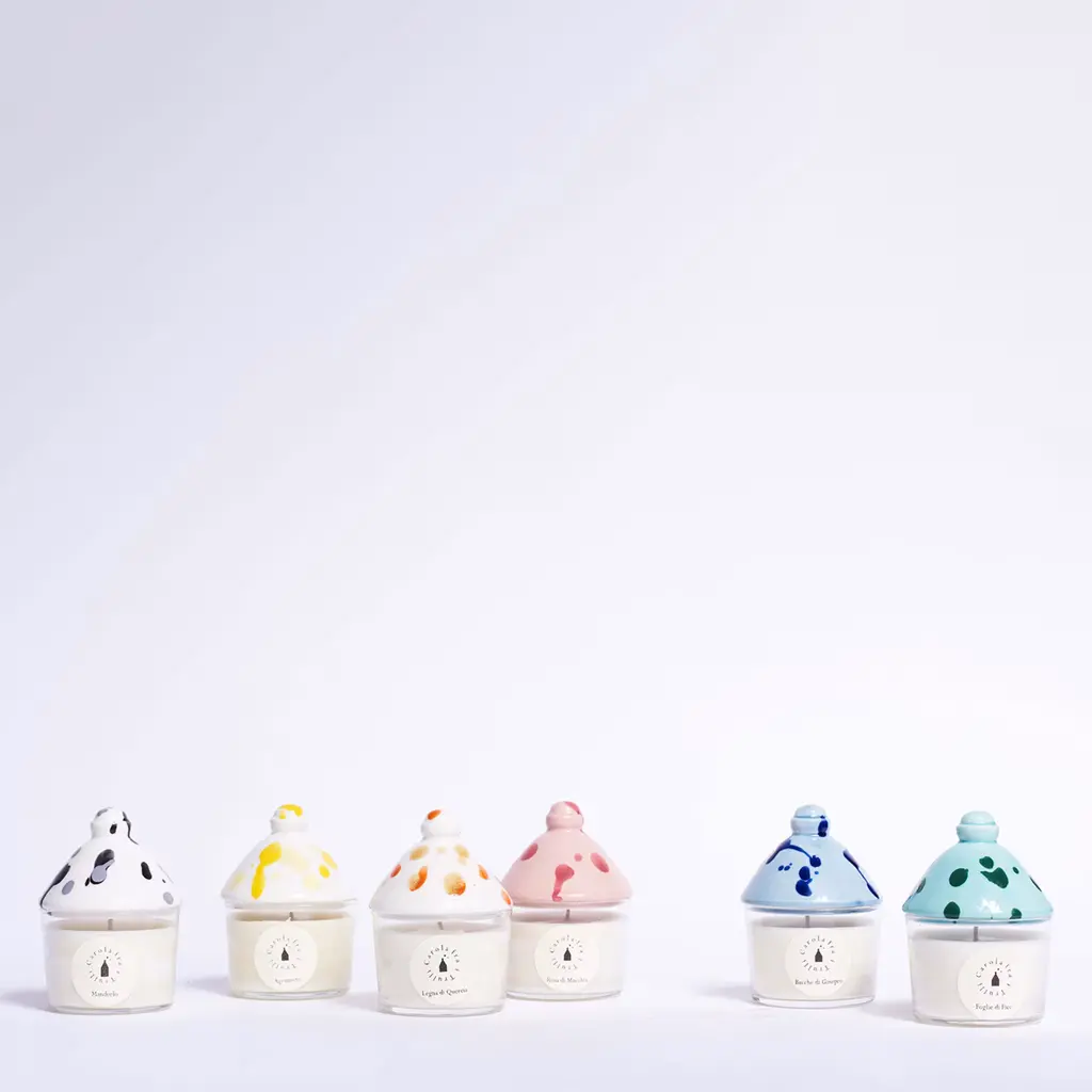 Candle in 100% soy wax and cotton wick combined with a ceramic lid handmade by qualified Italian craftsmen based on an exclusive design by the designer Carola Altamura. The color of the ceramic is matched with the fragrance of bush rose, thus creating a unique product. The candle is hand-poured by a historic Italian candle factory with respect for nature and tradition. Fragrance conceived as an ode to wild rose which, with its gentle strength climbs and thrives on dry stone walls and olive trees.
