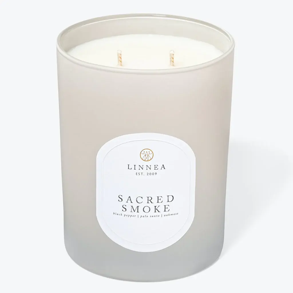Bringing to mind the excitement of the unknown on a foreign adventure, the natural soy wax Sacred Smoke candle scents the home with an air of smokey mystery. Scent Notes: Black Pepper, Palo Santo, and Oak Moss Linnea is crafted in small batches from fragrant oils and domestically grown soy wax which is then packaged in locally-sourced packaging materials to create products that are eco-friendly, cruelty-free, and highest quality ingredients free from harsh chemicals. Linnea's essence embodies four successive generations of inspiring women to create a brand full of heritage, passion, and integrity.