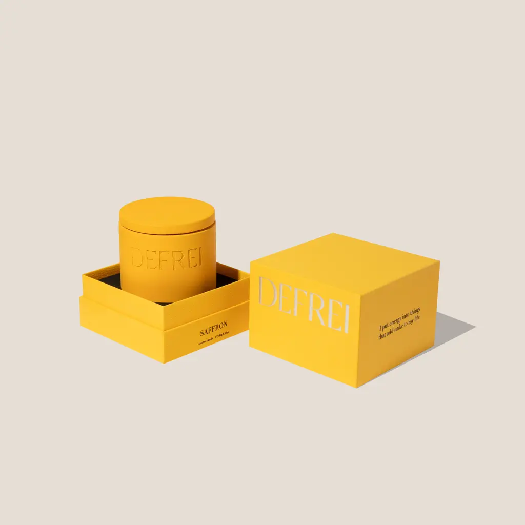 top: orange zestheart: saffronbase: cinnamonthis majestic spicy fragrance captures the essence of the golden hour just before the sun sets. Saffron candle opens with bright, uplifting cranberry and orange zest notes, leading into an extravagant heart of saffron, clove, and cardamom, enhanced by a touch of brown sugar. the composition is deliciously warm, supported by a rich base of vanilla and zesty cinnamon, creating a comforting and indulgent scent.
