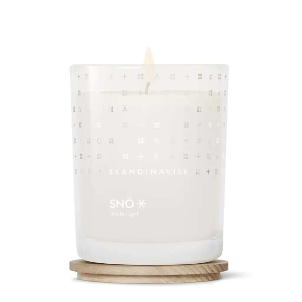 Skandinavisk’s scented candle Snö features a fresh wintery scent with notes of winter berries and frozen wood. This special edition scented candle is encased in a translucent glass jar. The candle comes in a gift box, and its wooden lid also serves as a base for the candle. Skandinavisk’s scented candles feature unique fragrances inspired by the nature, seasons, cities and traditions of Scandinavia. The hand-poured candle comes in an attractive, dishwasher-proof glass votive which can be re-used as a glass jar or tealight holder. The candle wax is made from sustainably sourced, non-GMO rapeseed oil and blended to burn slowly and evenly with no harmful emissions. Skandinavisk’s scented candles are lovely decorative items and a delight for many senses.