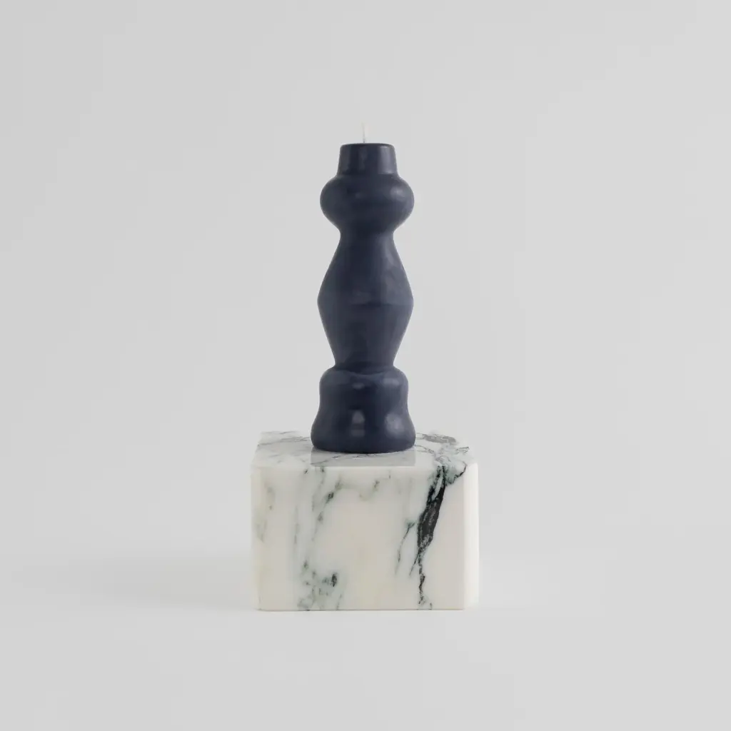 Hand-poured sculptural pillar candle inspired by postmodern design, made with 100% USA beeswax and a cotton wick. This unscented, clean-burning statement piece doubles as functional art, offering exceptionally long burn time while adding architectural interest to your home decor. Made in our candle studio in Woodbridge, New Jersey. - Burn time: 65 hours - Height: 5.75 in.