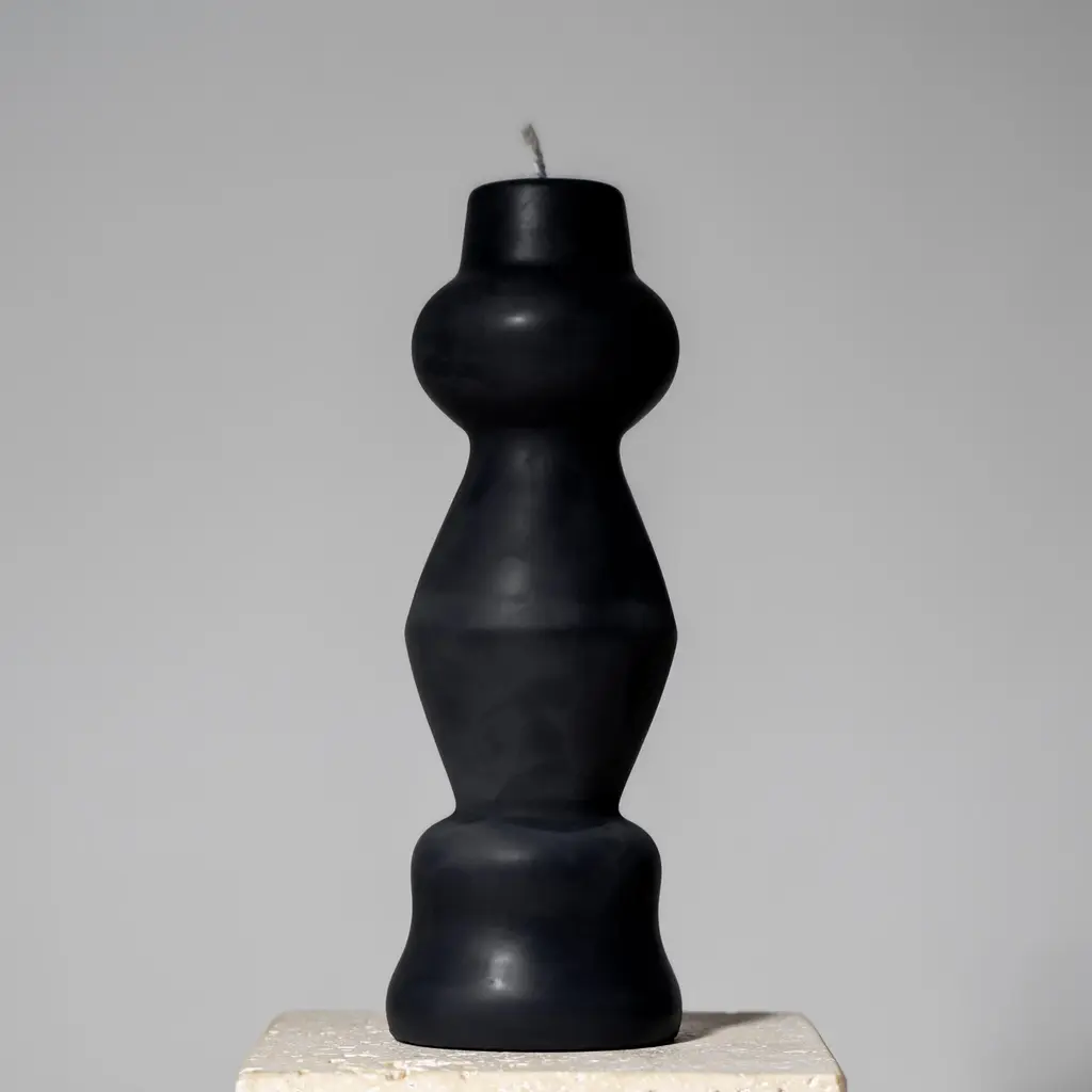 Sculptural Postmodern Beeswax Pillar Candle No.01 In Midnight Black