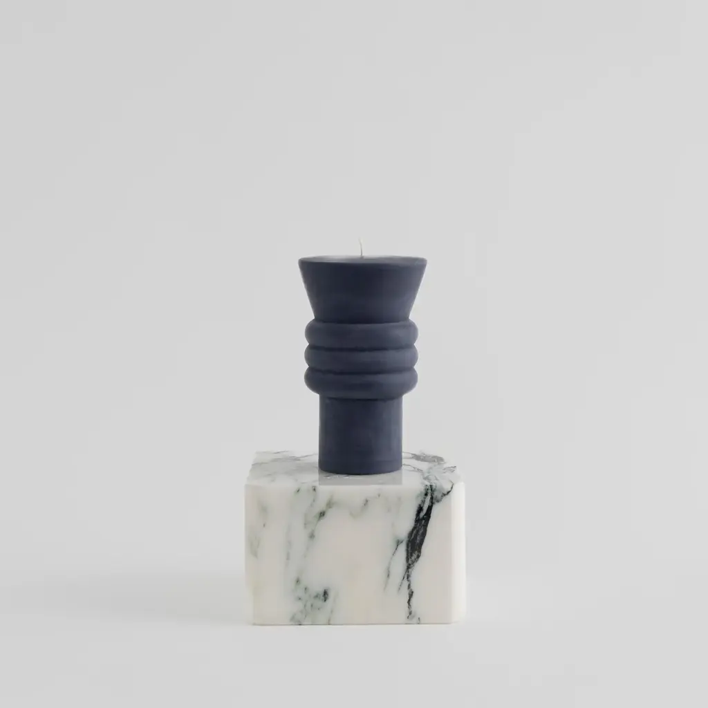 Hand-poured sculptural pillar candle inspired by postmodern design, made with 100% USA beeswax and a cotton wick. This unscented, clean-burning statement piece doubles as functional art, offering exceptionally long burn time while adding architectural interest to your home decor. Made in our candle studio in Woodbridge, New Jersey. - Burn time: 70 hours - Height: 4 in.