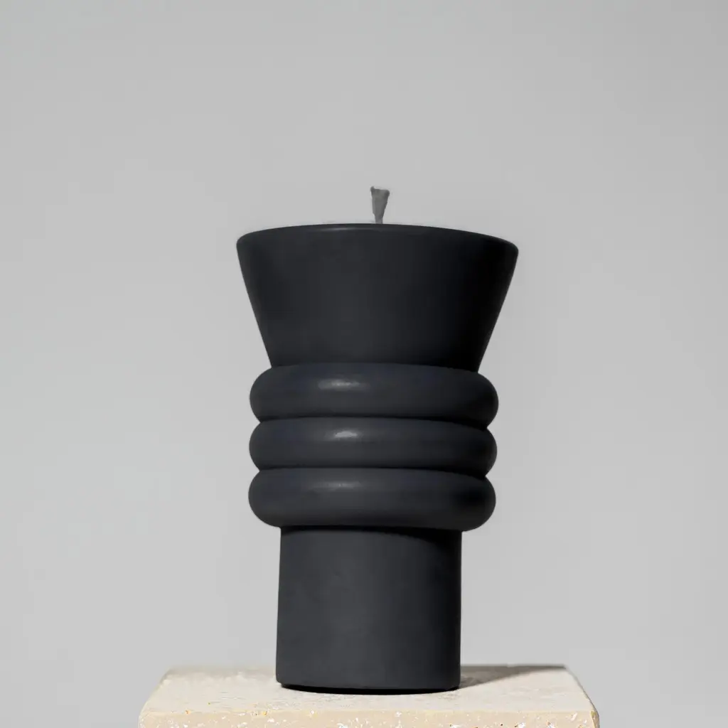 Sculptural Postmodern Beeswax Pillar Candle No.03 In Midnight Black