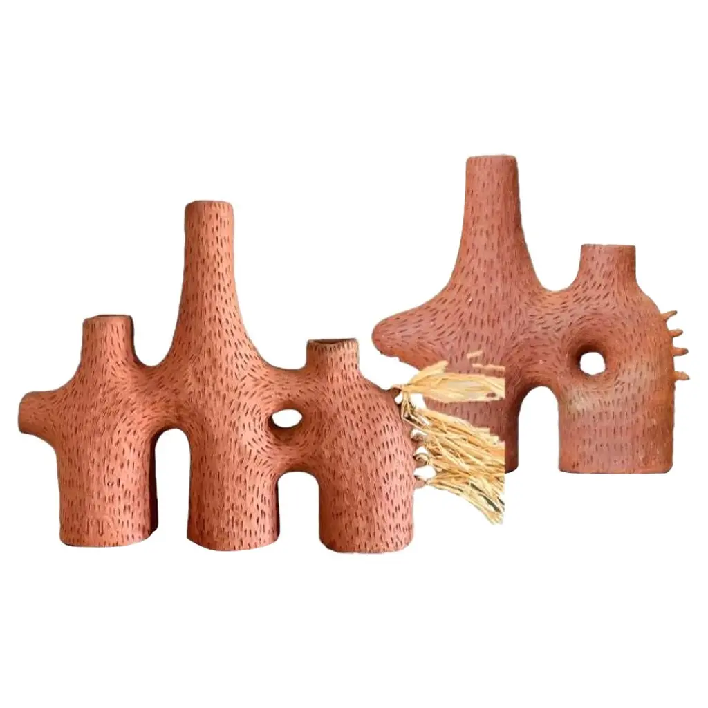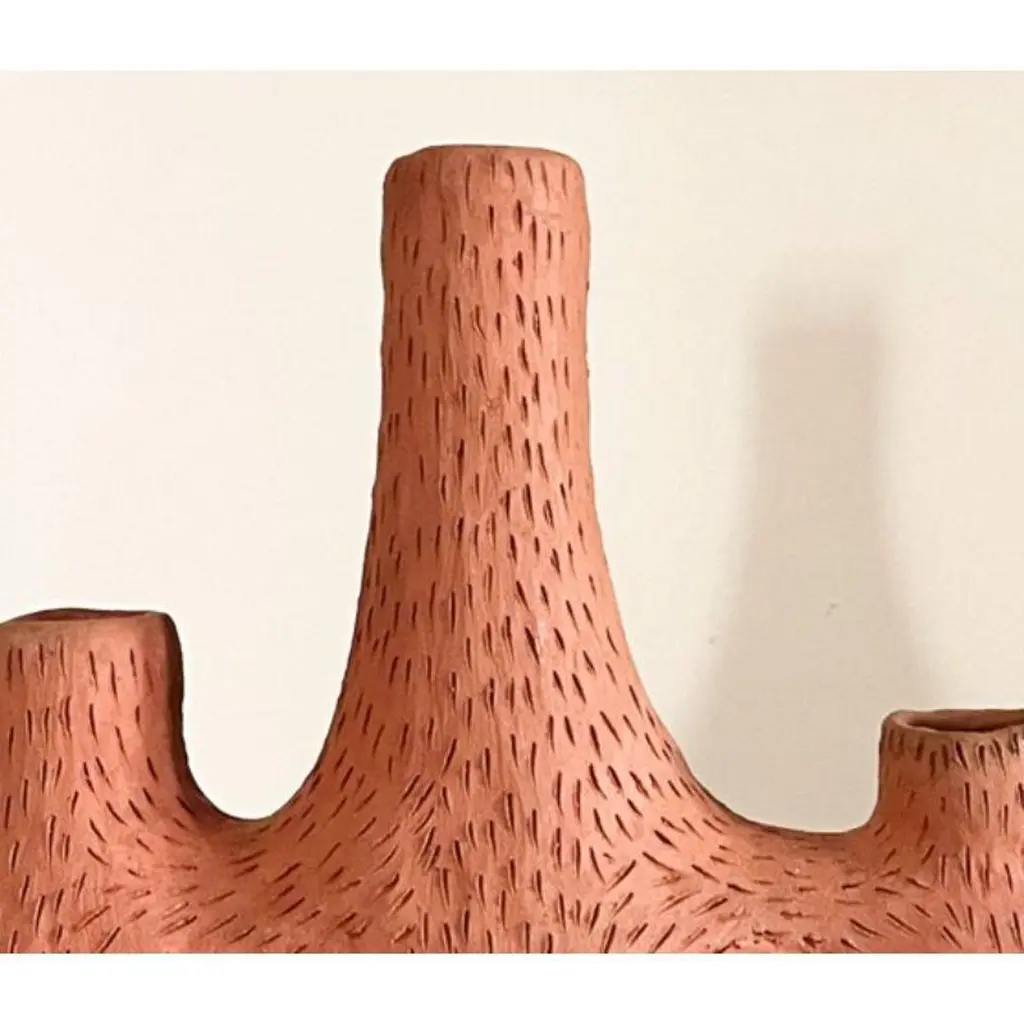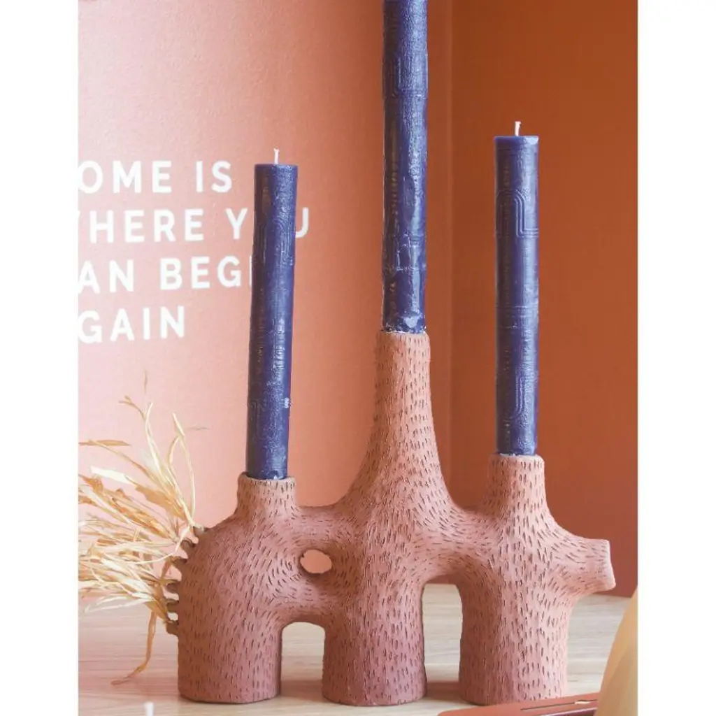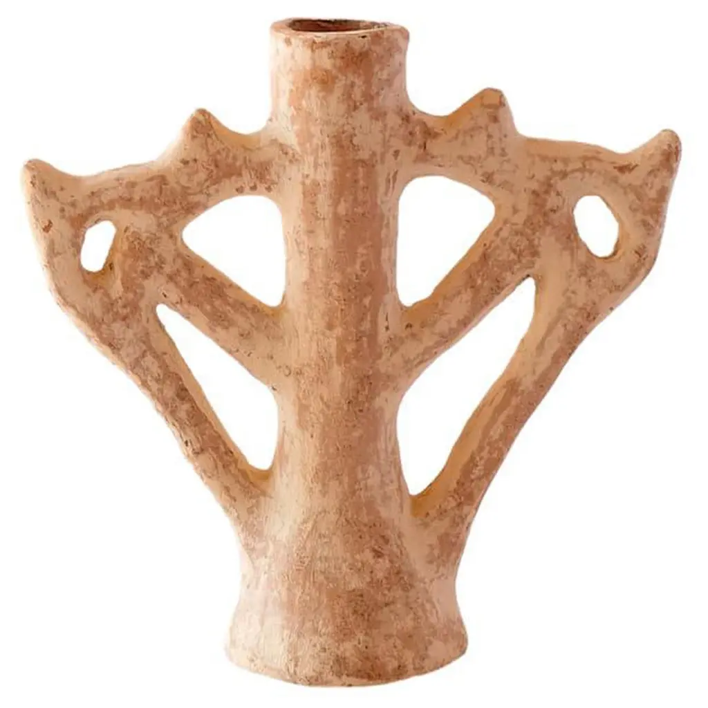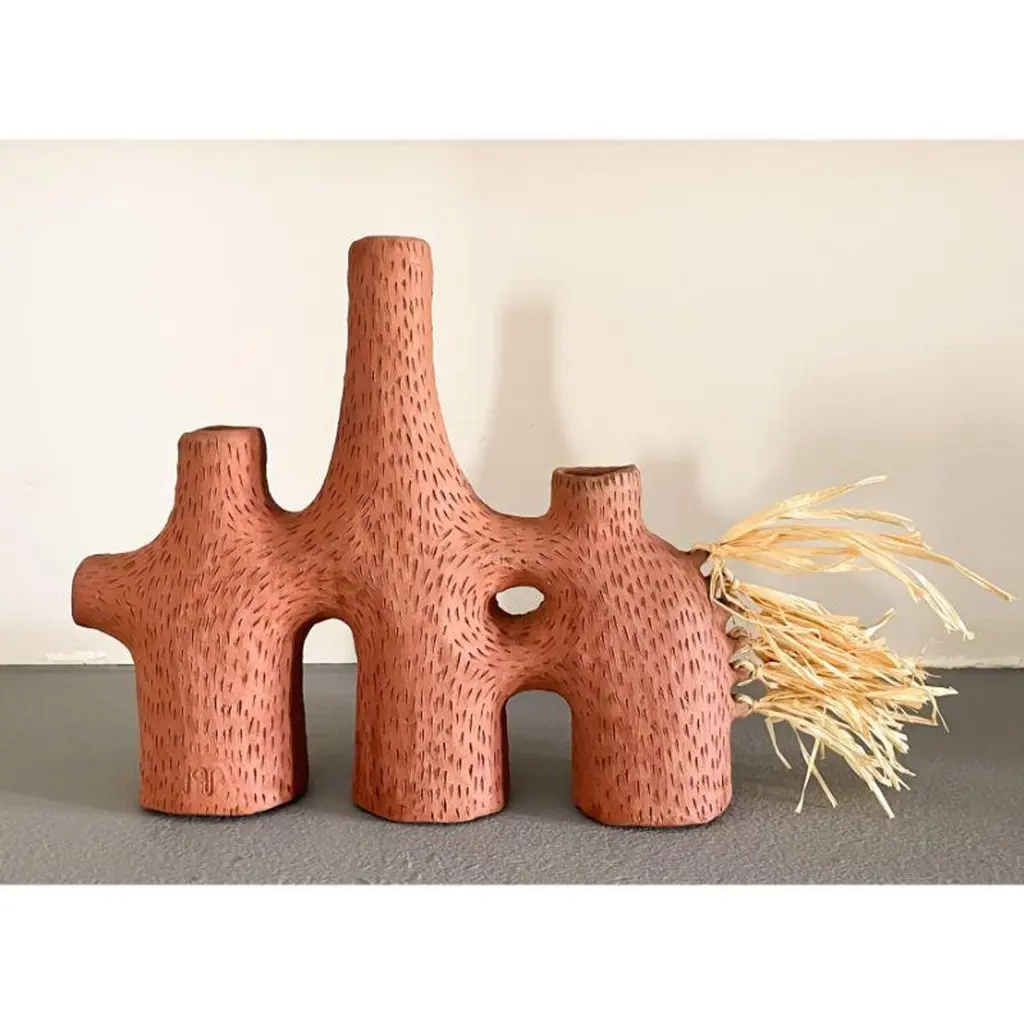 Selamawi ceramic candleabra by TheUrbanativeDimensions: W 25 x D 10 x H 24 cmMaterial: Raw Terracotta & RaffiaDry flowers only.Also available: Selamawi Ceramic Vessel.TheUrbanative is a contemporary South African furniture and product design company based in Johannesburg.The furniture and products are differentiated by the juxtaposition of abstracted African heritage inspirations with the functionality & aesthetic qualities of modern furniture silhouettes, materials & technologies; whilst guided by the philosophies of storytelling, Craft, collaboration and design evolution.All of the products are designed and manufactured in South Africa. Started in 2017 by Mpho Vackier (a process engineer turned interior &furniture designer), TheUrbanative's work is a constant exploration of the role of culture and heritage representations. Along with that concepts of visibility & representation of African cultures in modern societies with the ultimate intention of telling African stories through modern furniture and product design.