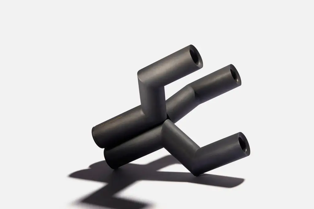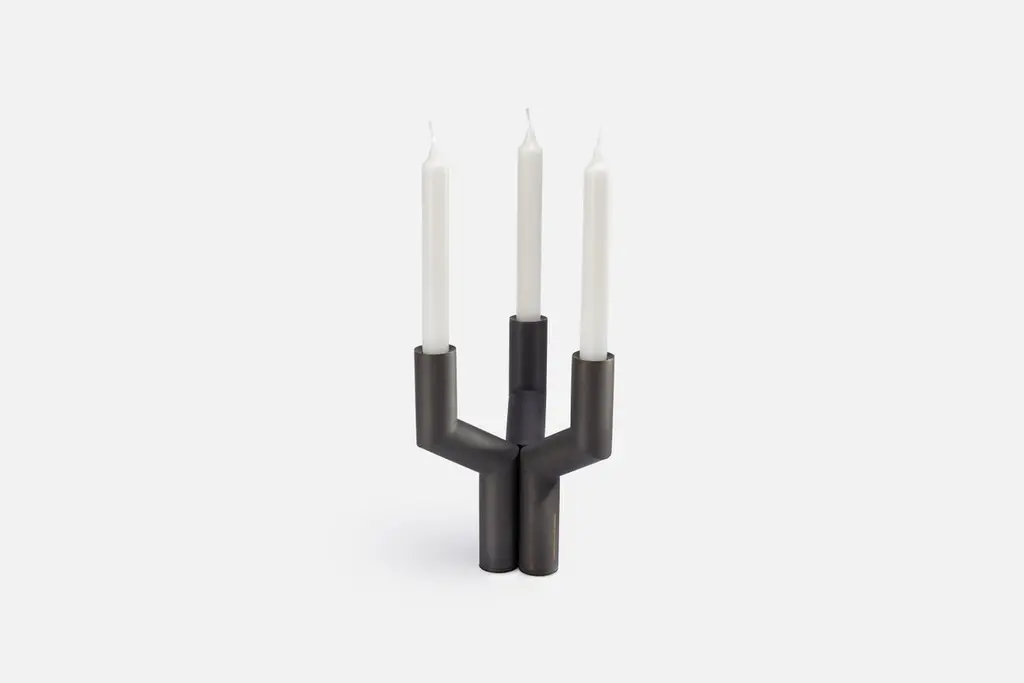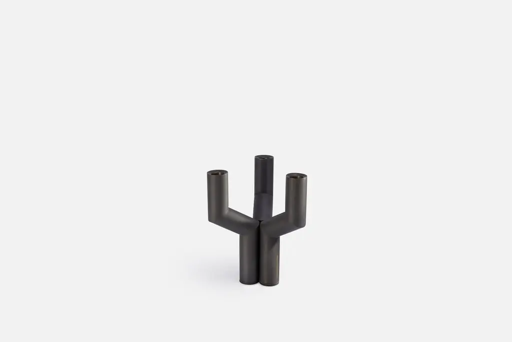 The Sermon candle holder, first released in 2021, celebrates Brutalist aesthetics and comes in two different finishes.The solid metal candle holder has been envisioned as an austere ritual artefact, a quality that lends it its name. It consists of three identical parts of welded brass tubes connected at their base, with each tube able to hold one candle. Its strict form and choice of material is a reference to the Brutalist architectural movement of the 1950s.Finish: satin brushed brassDimensions: H 20, D 15, W: 17 cm.