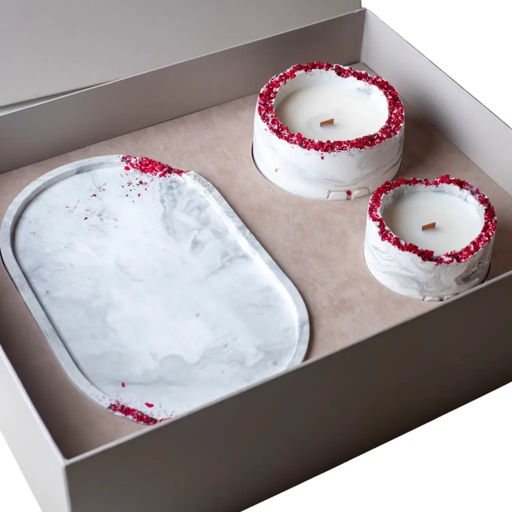 The Simply Red Crystal Candle set, each handmade, is a perfect gift for yourself or your loved ones with its elegant packaging.Our candles, adorned with the impressive touch of red and drawing attention with their decorative features, offer a unique fragrance experience enriched with notes of patchouli, cedar and sandalwood.