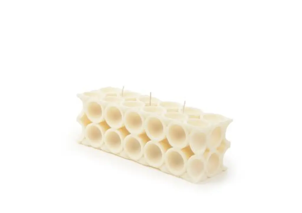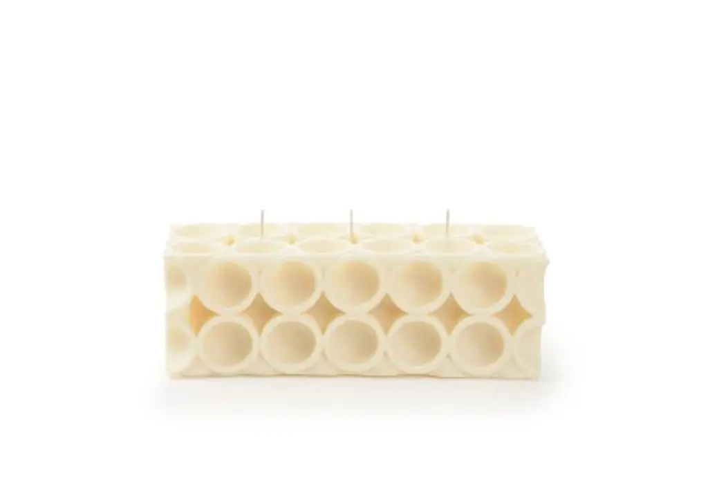 Soho H has a creative and modern design that sets it apart from traditional candles. Inspired by architectural forms and clean geometric lines, this distinctive candle blends function and art in an eco-friendly product. Part of the AU Collection created by Brooklyn-based sculptor and poet Andrej Urem, Soho H is produced with a combination of traditional techniques, 3D imaging and artistic flair. The hand-poured candle is made from 100% organic soy wax and comes with three wicks. The flames burn in a central cylinder without affecting the sides, accentuating the design as they illuminate the wax walls. This large 4″x4″x12′ candle will burn for 200 hours.