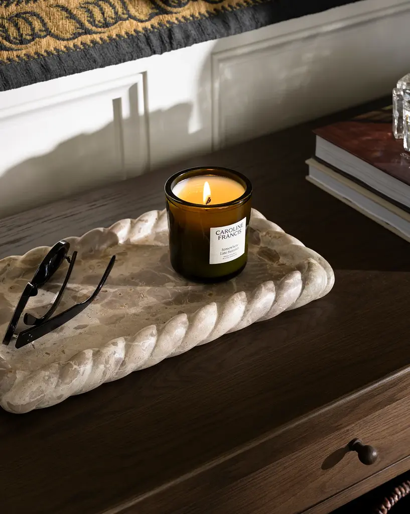Hand-poured in recycled flint glass, the Somewhere Late Summer Candle fills your home with notes of Lavender, Sandalwood, Cumin & Patchouli. The candle is made with 100% paraffin-free coconut soy wax for a clean, lasting burn.