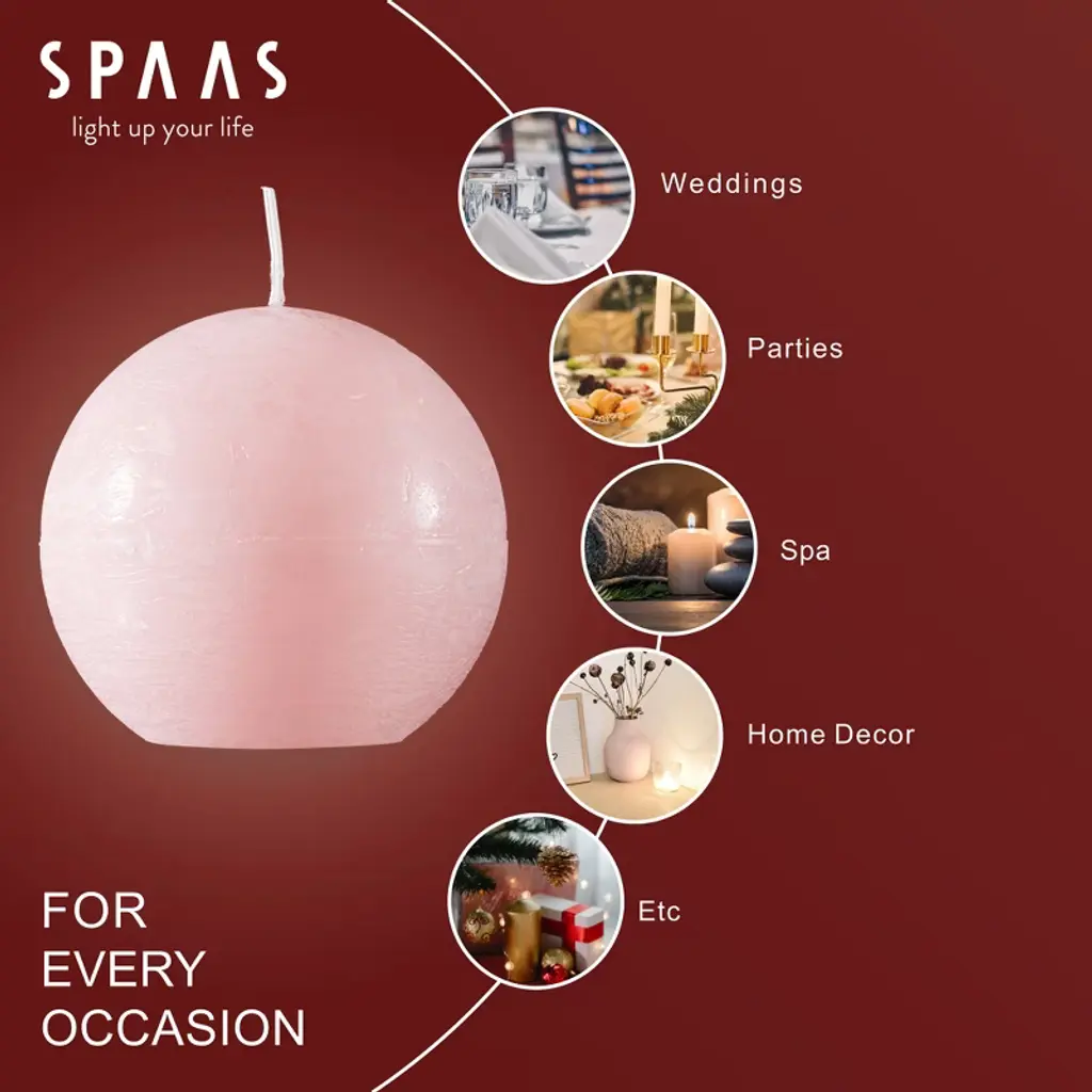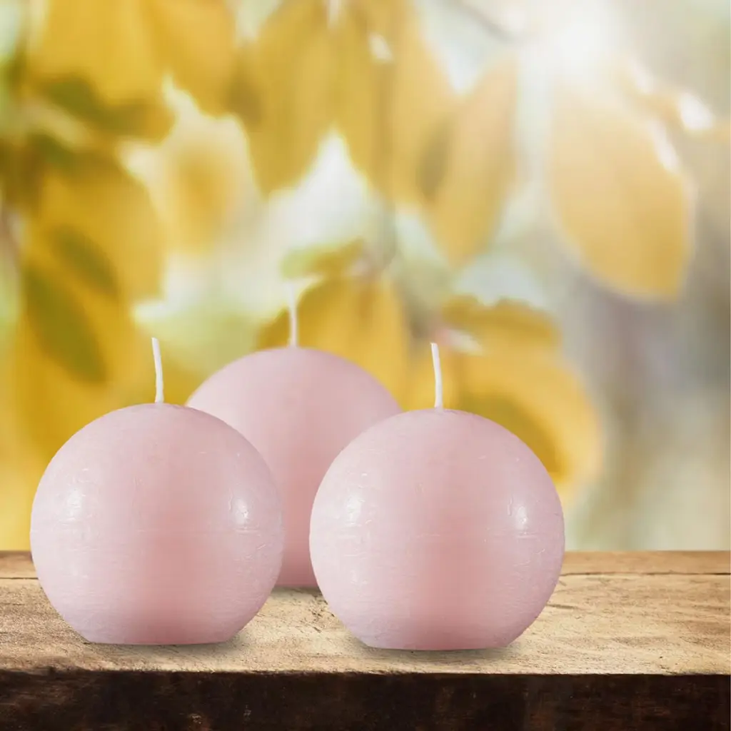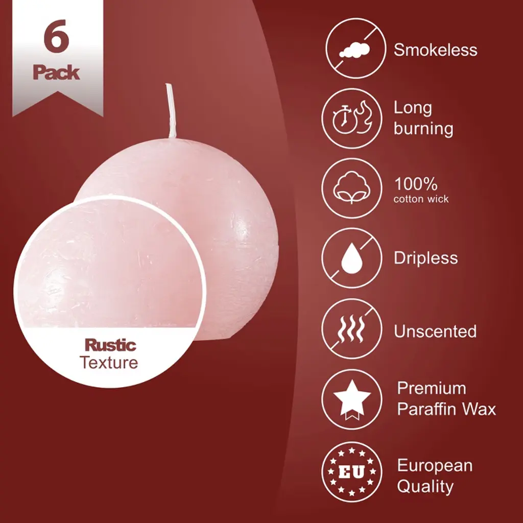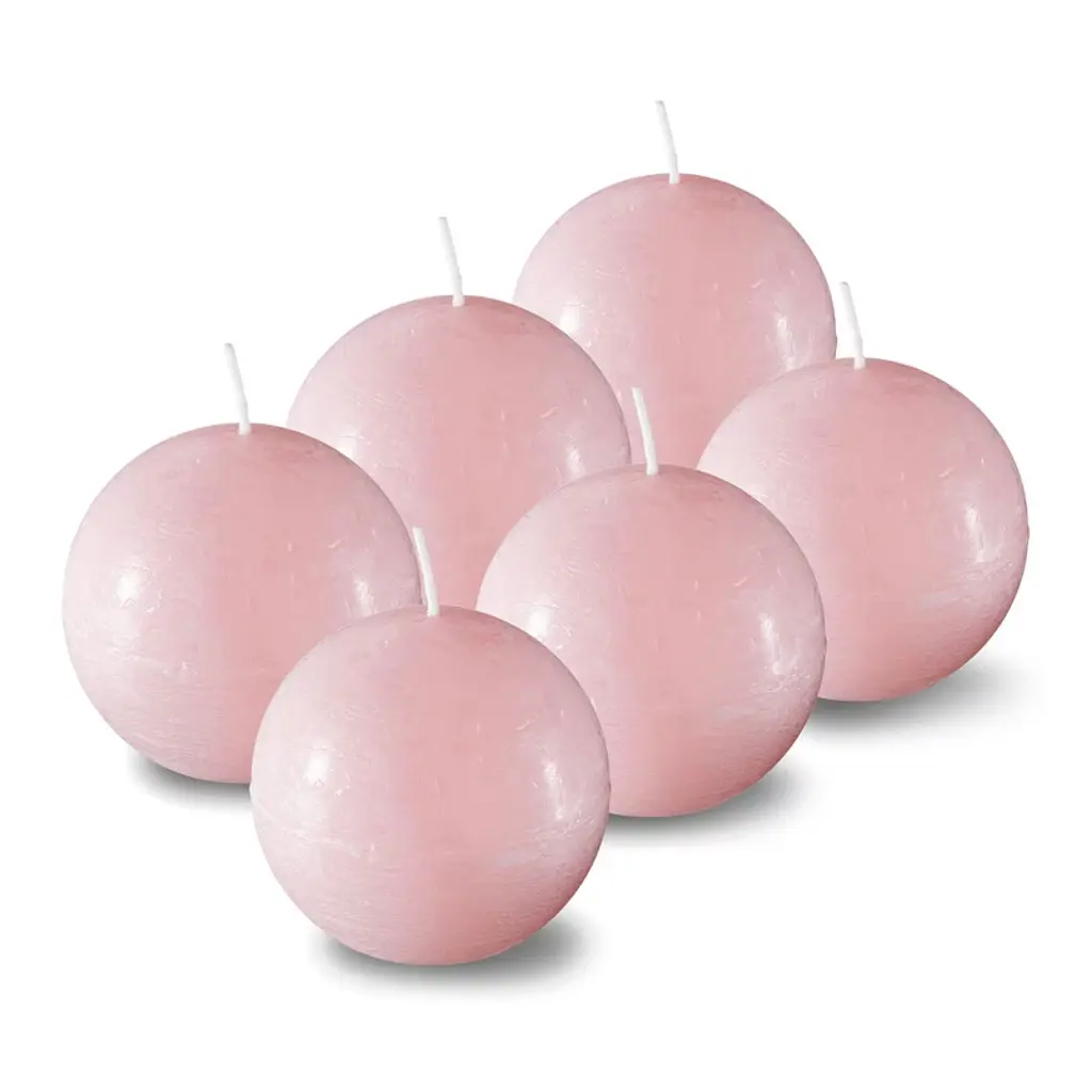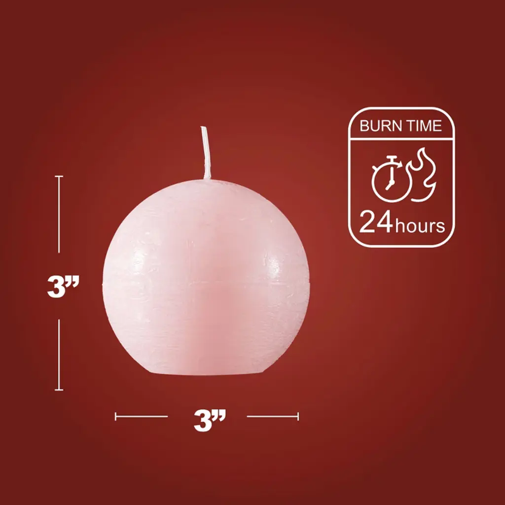 Spaas Rustic Ball Candles - Light Pink - Set Of 6 Unscented Decorative Round Candles - 3" X 3"