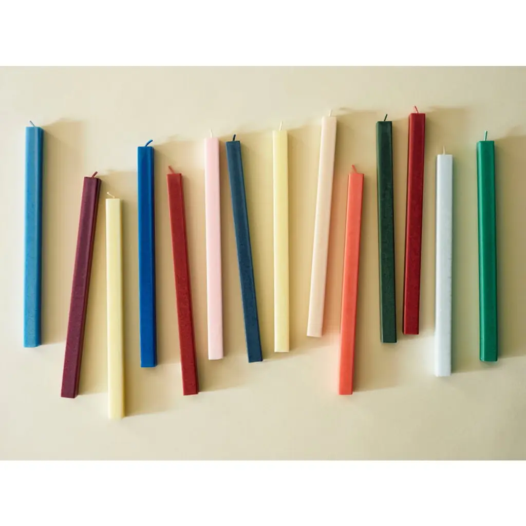 HAY's Square candle is so charming that you almost wouldn't want to burn it at all. The distinctive hexagon-shaped candle is an easy way to add a cheerful touch to your decor either individually or in a group. The matt-finished Square candles are available in several appealing colors, and this set includes four different ones – combine your favorites and enjoy the dancing flames in the home, or give playful candles as a gift to your loved ones!