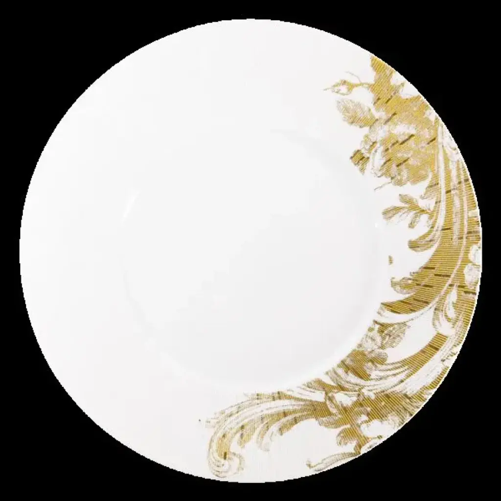 Available in gold or grey blue, the elegant Stanislas pattern on the engraved pieces brings about a certain dynamism to the collection.Today, Infini becomes more than just an “engraved pattern”. Haviland Porcelain was founded by David Haviland, an American who moved from New York to France after he was brought a broken tea cup to match and recognized the quality and color of the old piece of porcelain. Filled with curiosity, he went to France to find the factory where the cup had been made, but the samples he was sent were not up to his standards. So in 1841, he moved to Limoges to set up his own factory. Traditional French dinnerware was usually produced in Limoges and sent to Paris for decoration. Haviland insisted on setting up a studio within his factory to have more control over the designs. Renowned artists, including Cocteau, Dali, and Kandinsky have played a role in the company's designs. Today, Haviland is one of the premier names in French porcelain dinnerware, sought by collectors all over the world. Clients have included the White House, Empress Eugenie, General de Gaulle, Jacques Chirac, the Emperor of Japan, and the Royal Court of Morocco.