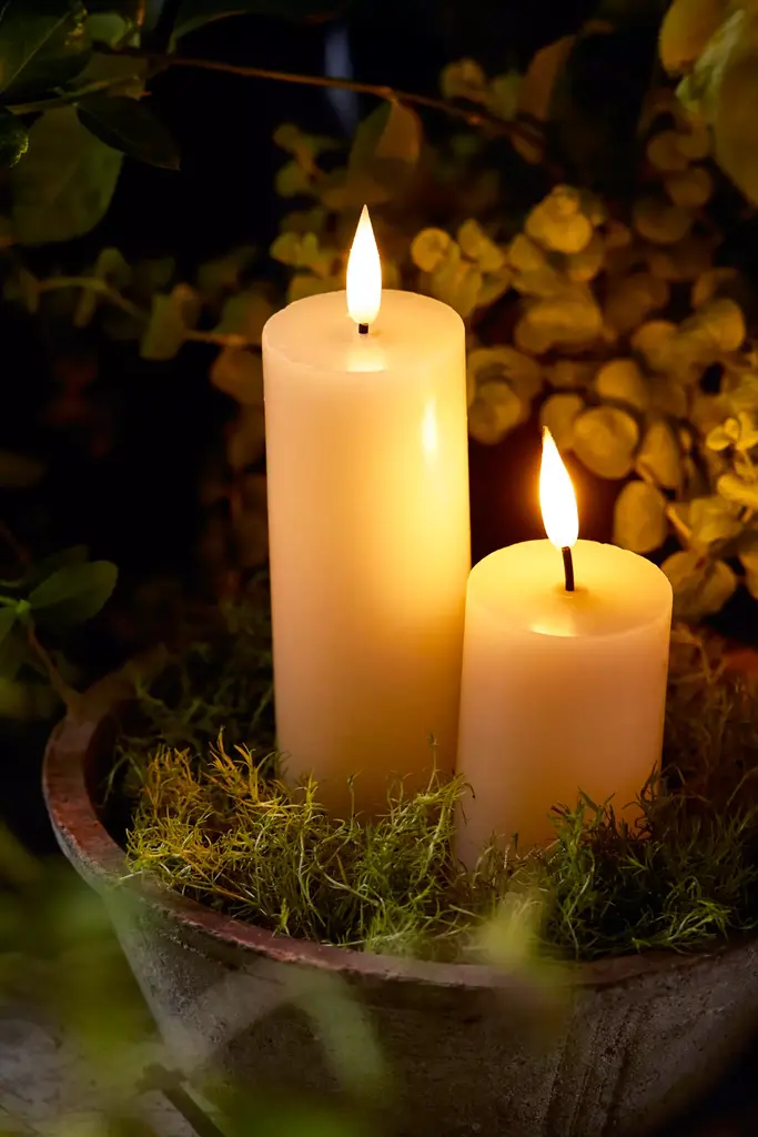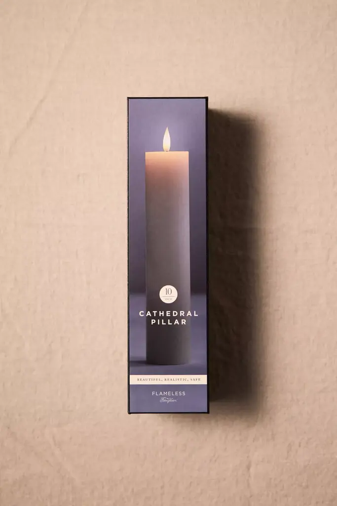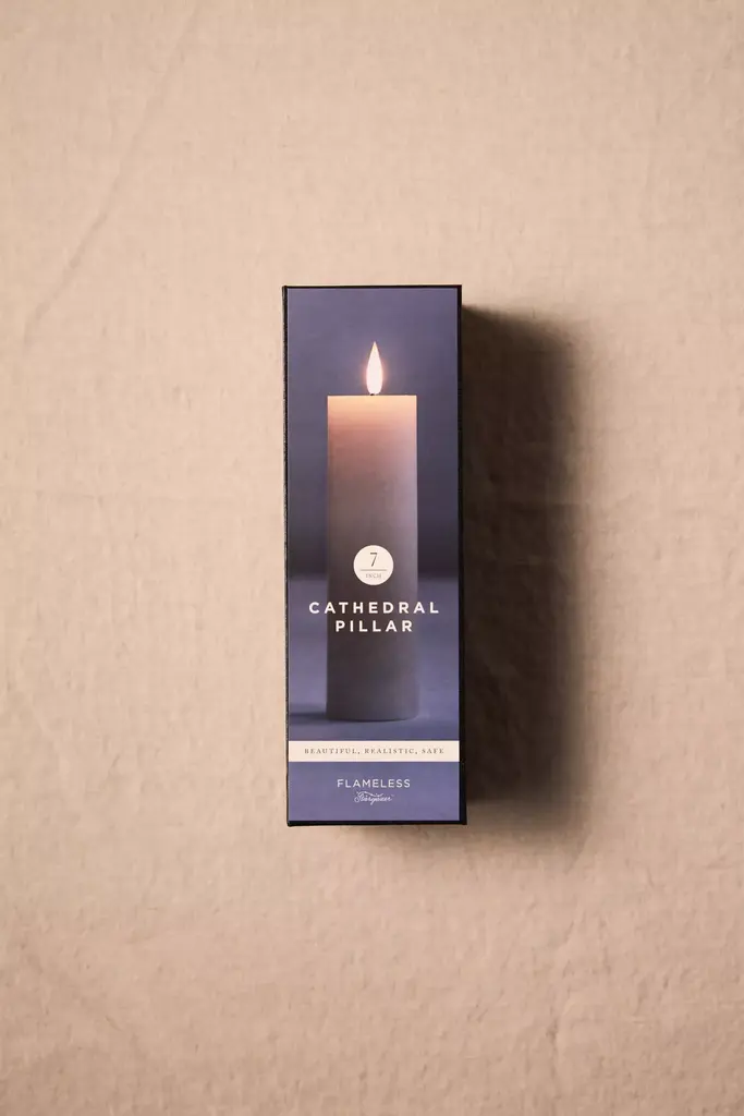 Enjoy the soft glow of candlelight anywhere inside your home safely. Long-lasting, cool to the touch, and smoke free, the Stargazer Flameless Cathederal Pillars features a moving flame illuminated by the warm glow of an LED bulb.