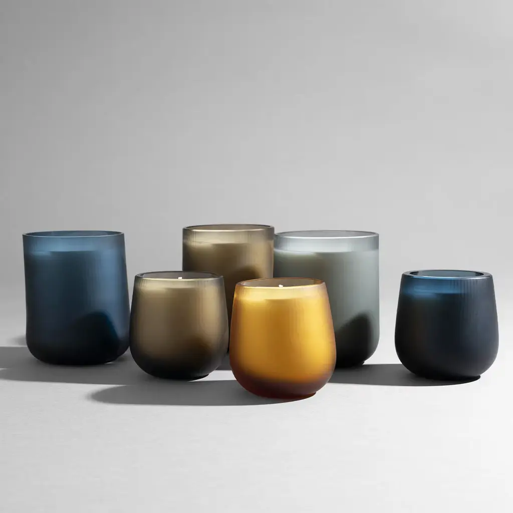 Stilla, like a drop of wax. Federico Peri introduces Stilla Cerae, Purho's debut candle collection for spring 2024. Inspired by the Latin word for "drop," the candles feature textured, elliptical shapes crafted from Murano glass and engraved with the rigadin technique. The large deep blue candle is infused with a fig leaves and ivy fragrance. Available in smaller sizes and additional fragrances. For more details, please contact the Concierge.