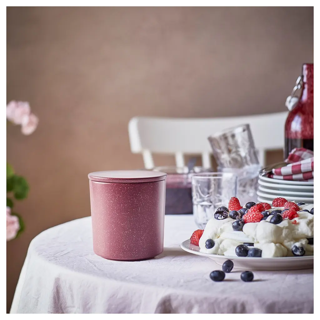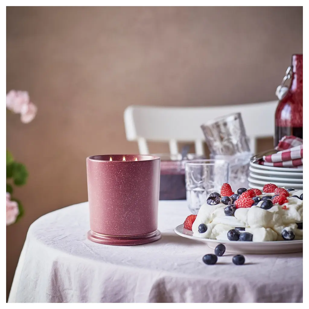 STÖRTSKÖN Scented candle in ceramic jar w lid - Berries/red 60 hr. A joyful scent of berries, leafy greens and violets. Suitable when you want to create a happy atmosphere at home with inspiration from sunny summer days. Never leave a burning candle unattended. Keep away from children and pets.