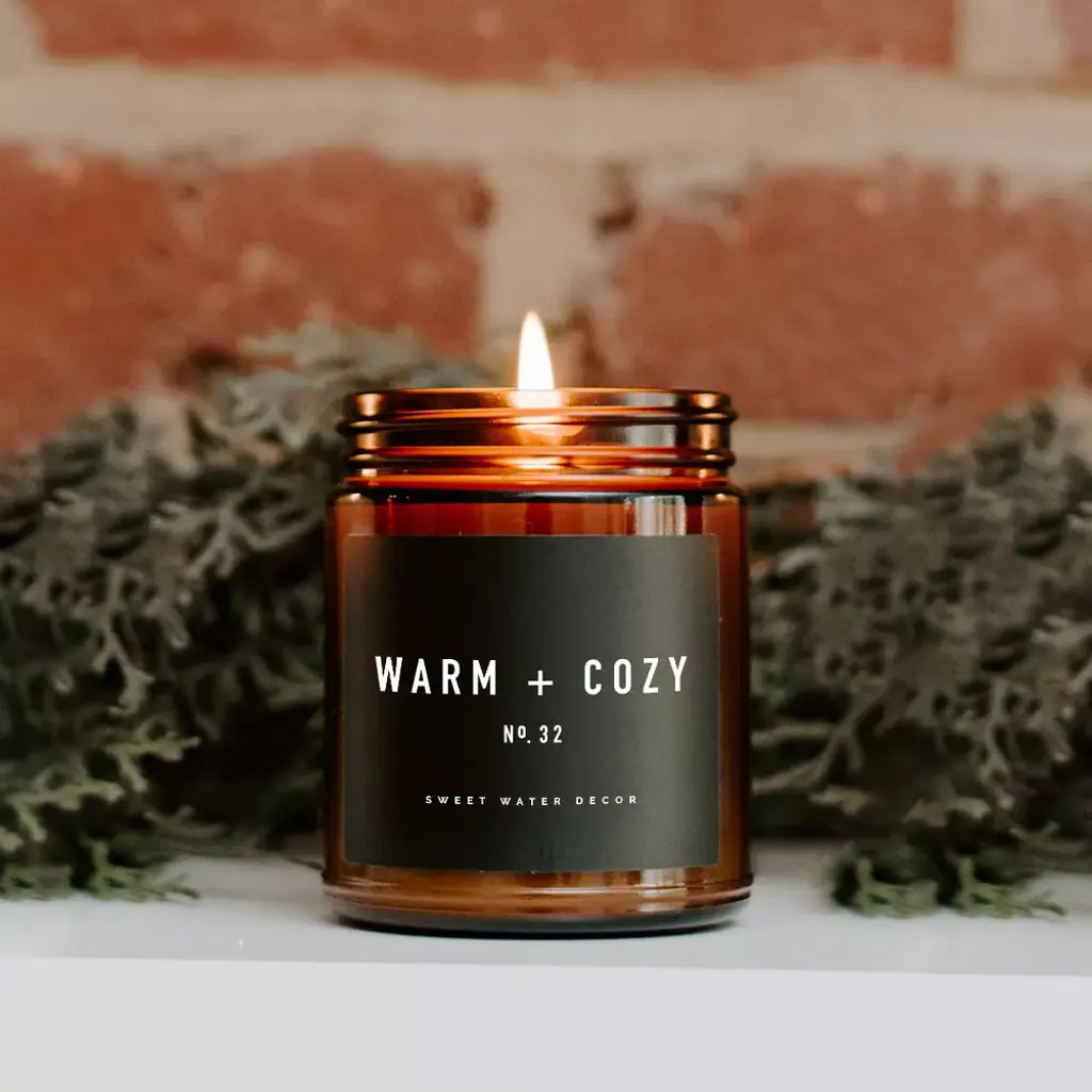 Warm + Cozy was voted "Best Fall Candle Overall" by Forbes Vetted (2022)! Sweet Water Decor's Warm and Cozy soy candle will take you to a place by a warm fire, with cozy blankets, in your PJ's, enjoying the scents of the season. With notes of pine, orange, cinnamon, cypress, and fir - it makes a perfect candle to burn during the holiday season.Infused with natural essential oils: orange, cinnamon, clove, vetiver, pine