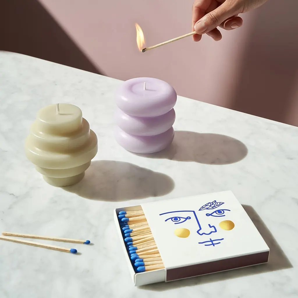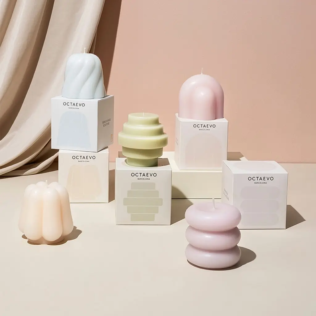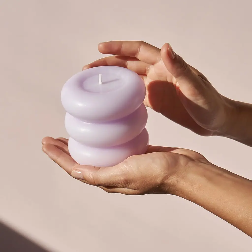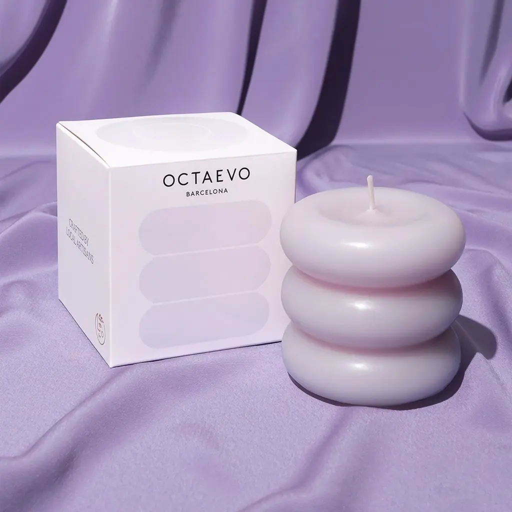 The color of spring flowers and the bold geometry of stacked forms come together in the Octaevo Temple Candle Pale Lilac. Reimagining ancient mythical objects from imaginary altars, the candle grabs one’s attention with its three circular shapes and soft, pastel hue. Burning the candle creates a spectacle of light and melted wax, changing the appearance of the sculptural object gradually over time. To produce the Temple collection, Barcelona-based Octaevo collaborates with Italian artisans, who pour every candle by hand. A lead-free, natural cotton wick completes this high-quality, unscented candle. The Octaevo Temple Candle Pale Lilac burns for a long time, up to 60 hours, and you can use it individually or in a set with the other designs from the same collection.