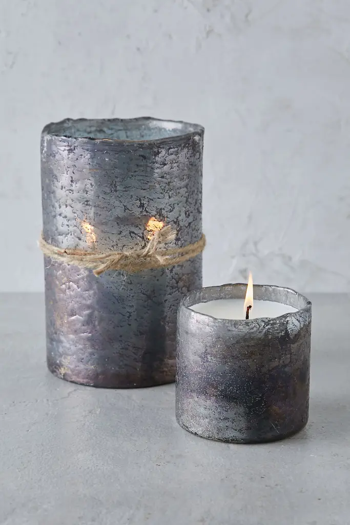Textured Glass Candle, Tobacco Bark