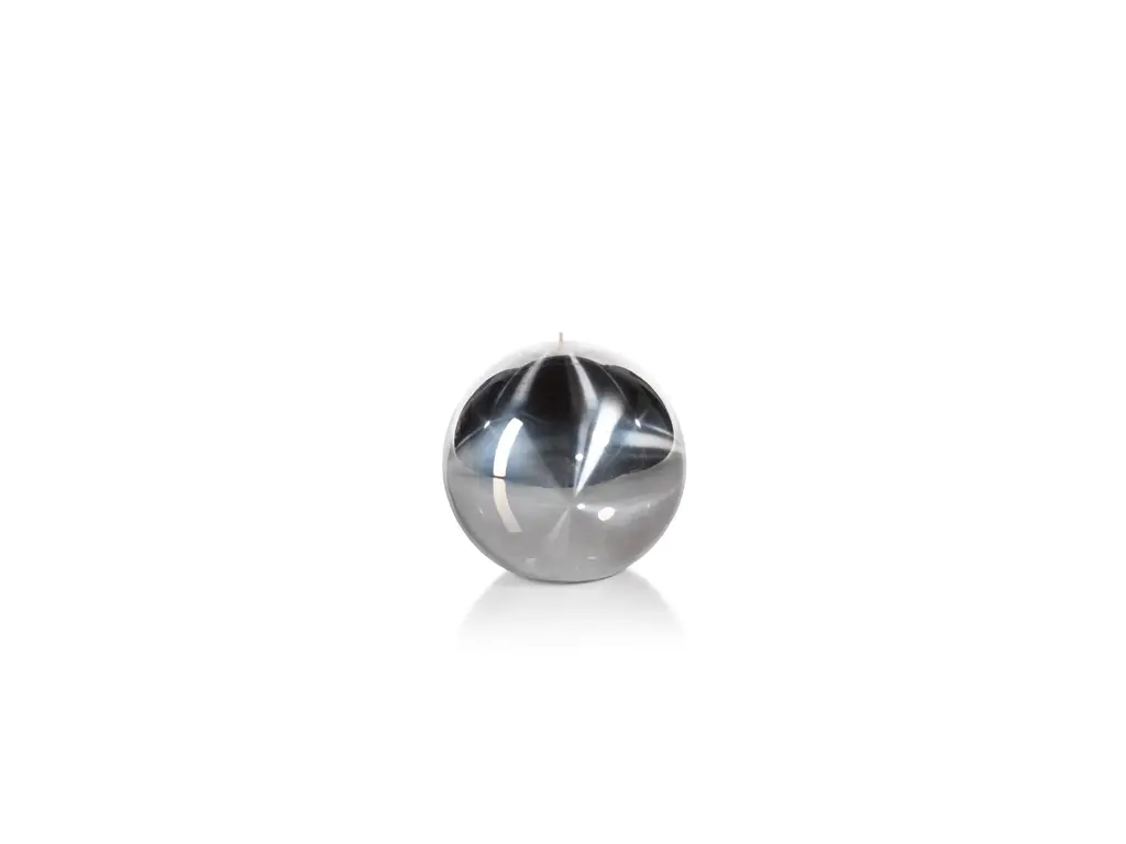 Accentuate your holiday home accessories with a contemporary Titanium Ball Candle. Silver in color with a finish top layer of metallic paint on a regular molded wax. Display and use on a mantel or tray.