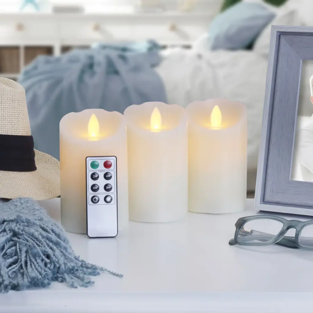 Perfect for adding a serene ambiance to your spring decor, these flameless LED wax aqua candles are ideal for tabletop placement, creating a warm and inviting atmosphere without the worry of open flames.