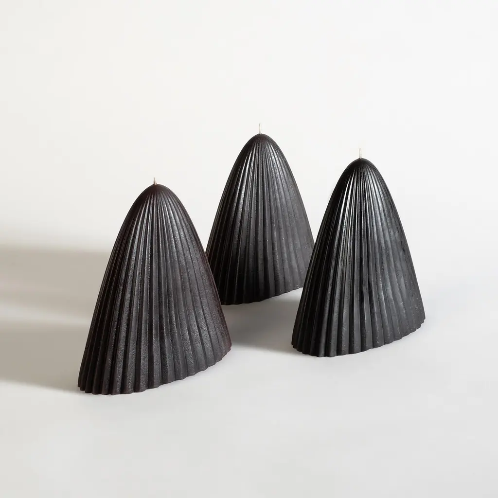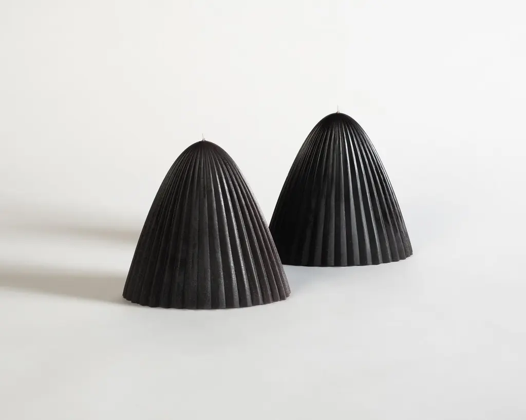 100% beeswax, organic hemp wick and coloring, unscented.The tusk candle takes its inspiration from natural motifs: Ivory, tusks, canines, teeth and other fangs. Ridges play with wax, channeling it, also slowing down the burn.It is one of these artifacts in between, animal and vegetal, inanimate and perhaps alive.~ Measures: 6.75" x 3"~ 6" tall~ 1.5 lbsEach candle is handmade in Oakland, CA.Tusk candle is available as a set of the small and medium size in both natural and black.