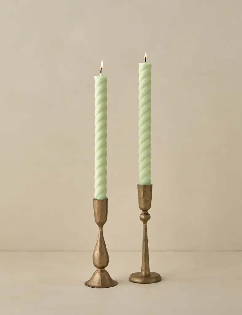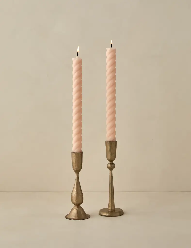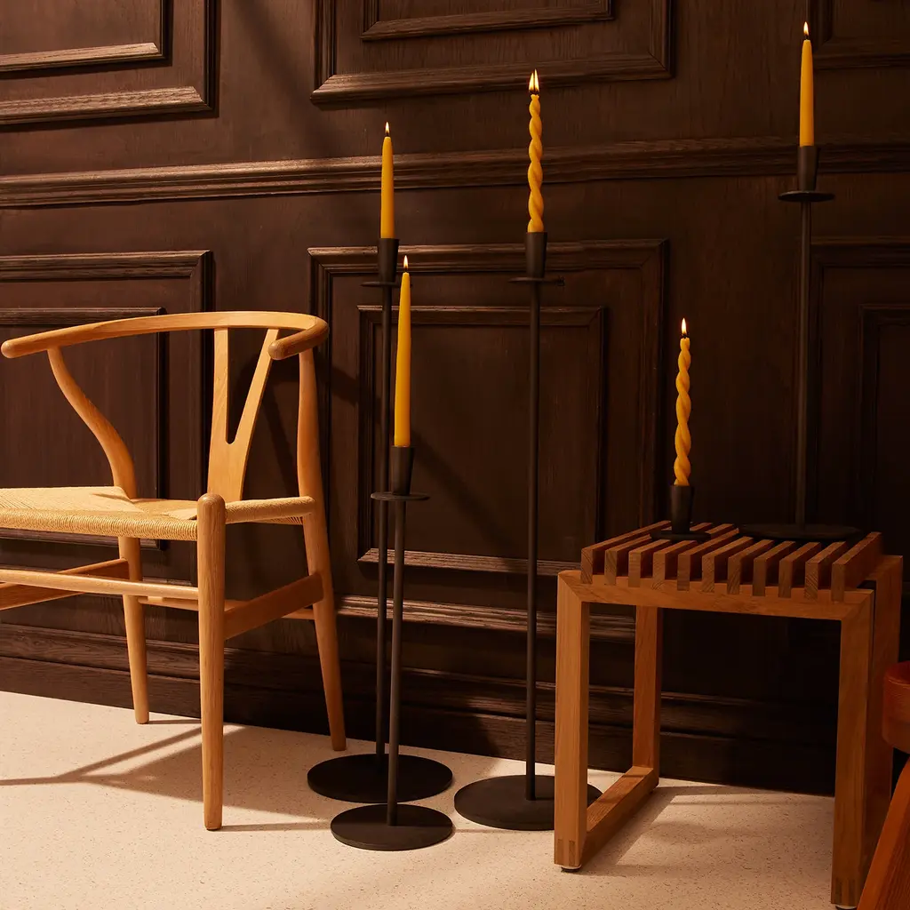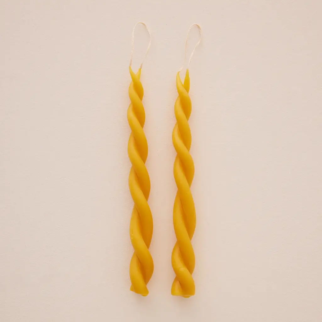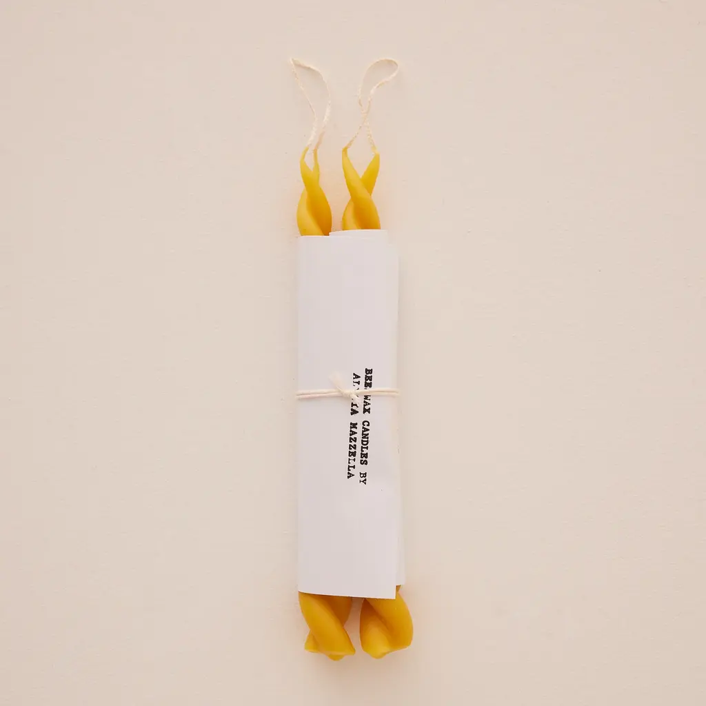 When it comes to taper candles, Alysia Mazzella's signature Twin Flame shines as a fan favorite, and for good reason. 'A poem written in beeswax' sourced responsibly from New York State apiaries, this 100% natural candle made from two hand-dipped tapers carefully wound together is perfect for special occasions and every moment in between. Each unique piece promises approximately 2 hours of (clean) burn time, slowly dripping into captivating golden sculptures that only add to the aesthetic, while releasing a subtle honey scent. For the best experience, allow it to self-extinguish. The Twin Flame fits standard holders with a gentle twist if needed. Slight variations are natural and to be expected.