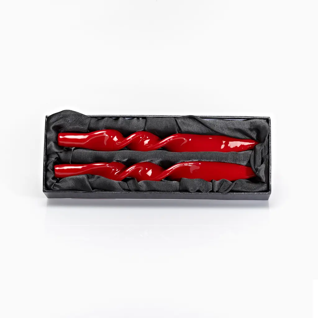 Bring the “wow” factor to your dining table or to any room with the Twist Candle from Graziani. A (literal) twist on classic taper candles, this design has a sculptural appearance further enhanced by a lacquered finish. Like other Meloria candles, the Twist Candle is finished by hand with a special coating that gives the wax a glossy surface. Ideal for adding a touch of glamour to a table setting, this candle is also perfect to use an an ornamental accent. The candles conveniently fit inside standard candle holders. Available in a set of two, this product comes with an elegant gift box with black satin lining.
