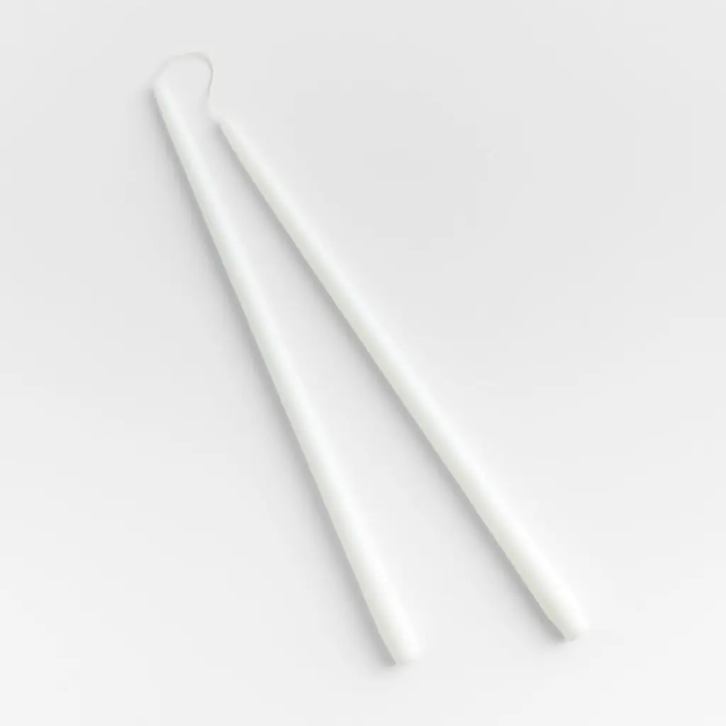 Tall and twisted, this pair of tapers brings the drama to tables both chic and casual. The elongated candles are an elevated take on a decorating essential, gracefully twisted to create subtle texture. In a warm and creamy oat-inspired huewe think it's the perfect neutralthe elongated tapers set a festive mood.