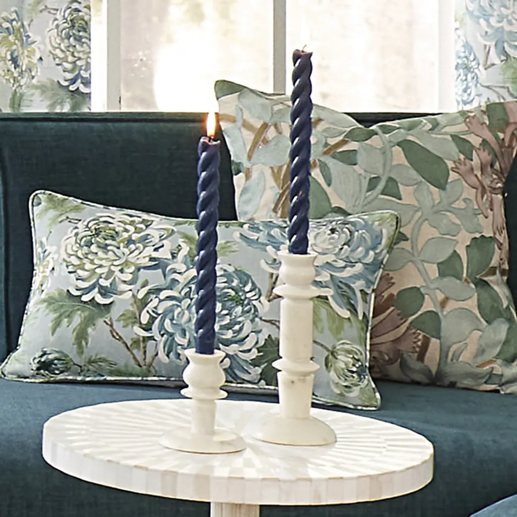 Romantic light and texture for your tabletop, buffet console, and mantel. These elegant Twisted Taper Candles are handmade of dripless, unscented paraffin. The gorgeous range of decorative colors coordinate beautifully with our favorite fabrics and table décor. Each taper candle is 10-inches tall and designed to fit most standard candle holders. Twisted Taper Candles features: