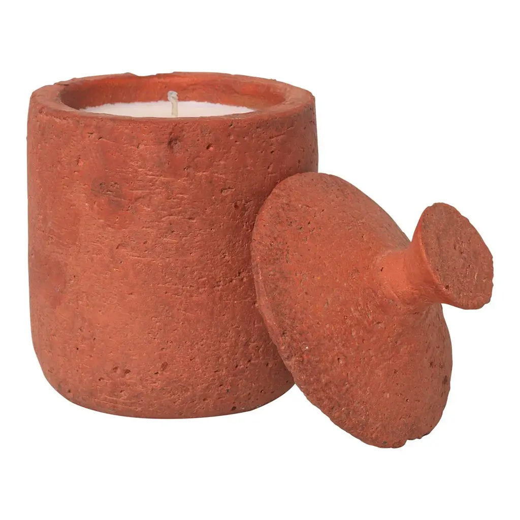 Reminiscent of treasures from the past, the Ura Scented Candle has a unique, raw surface owing to the process of hand pressing the terracotta. Completed with a matching terracotta lid, the scented candle has an earthy expression and invite to moments of relaxation and reflection. Choose your favourite scent to complement the sanctuary that you call home.