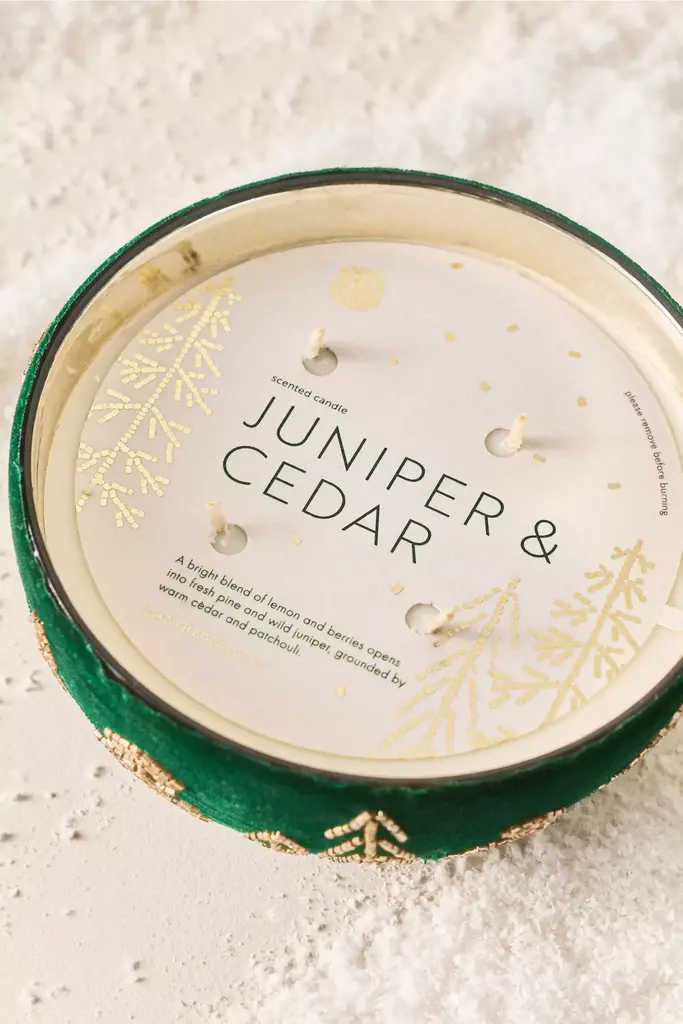 **Juniper & Cedar (Woody):** Fresh juniper and sunlit berries mingle with pine and delicate rose, resting on a base of warm cedarwood and subtle praline a crisp, woodsy escape that feels like a quiet walk through evergreen forests. *For the best burn experience, keep the following in mind:* * The first time you light your candle, allow it to burn until the wax pool melts all the way to the edge; for a larger candle, this may take several hours. Wax has "memory," so if it is extinguished with a partial pool, that will prevent a full, even pool from forming in the future. * Trim your wick each time you light the candle, removing any "bloom" from the previous burn. We recommend lighting a wick that is 1/4-1/2" in length. * Ensure that your candle is placed on a heat-safe surface. * Do not allow wick trimmings, dust, or other materials to accumulate in the wax pool. * To ensure safety and longevity, be sure to check the bottom of your candle for additional instructions, including details on when to discontinue use.