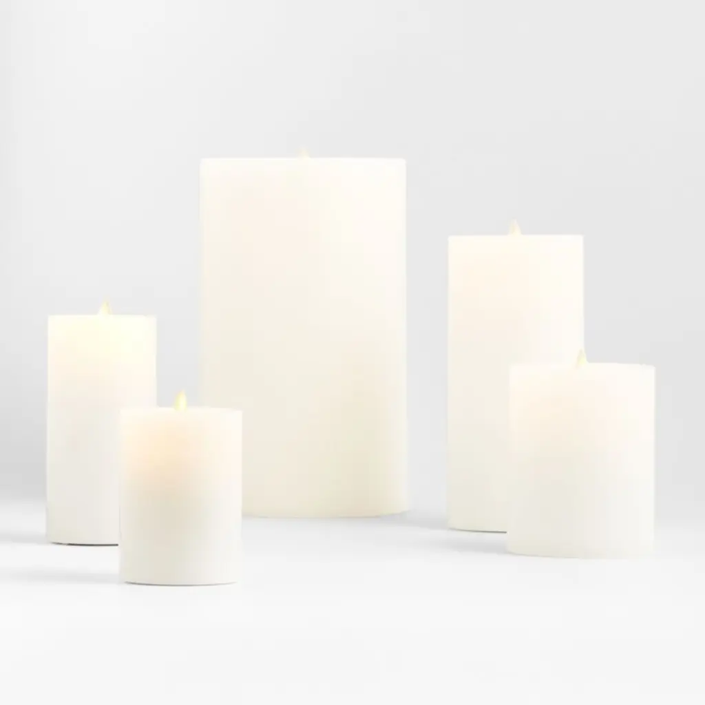 Our flameless candle fools the eye with its lifelike flickering, warm glow and charming faux flame dancing atop a real wax pillar. Safe and mess-free, the tall warm-white candle creates atmosphere and gentle illumination on the nightstand, next to the bathtub or anywhere a burning candle would be impractical. Use the remote control (sold separately) to turn the flameless pillar on, or set the timer for five hours of delightful and worry-free candlelight every evening.