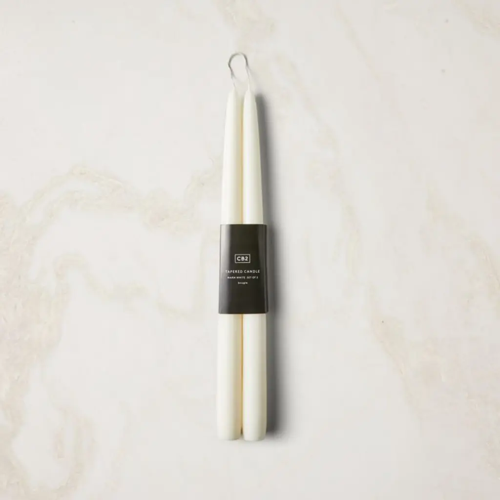 Modern dipped warm white tapers flicker soft, warm light in any setting. Quality throughout, it's solid color all the way to the wick. CB2 exclusive.