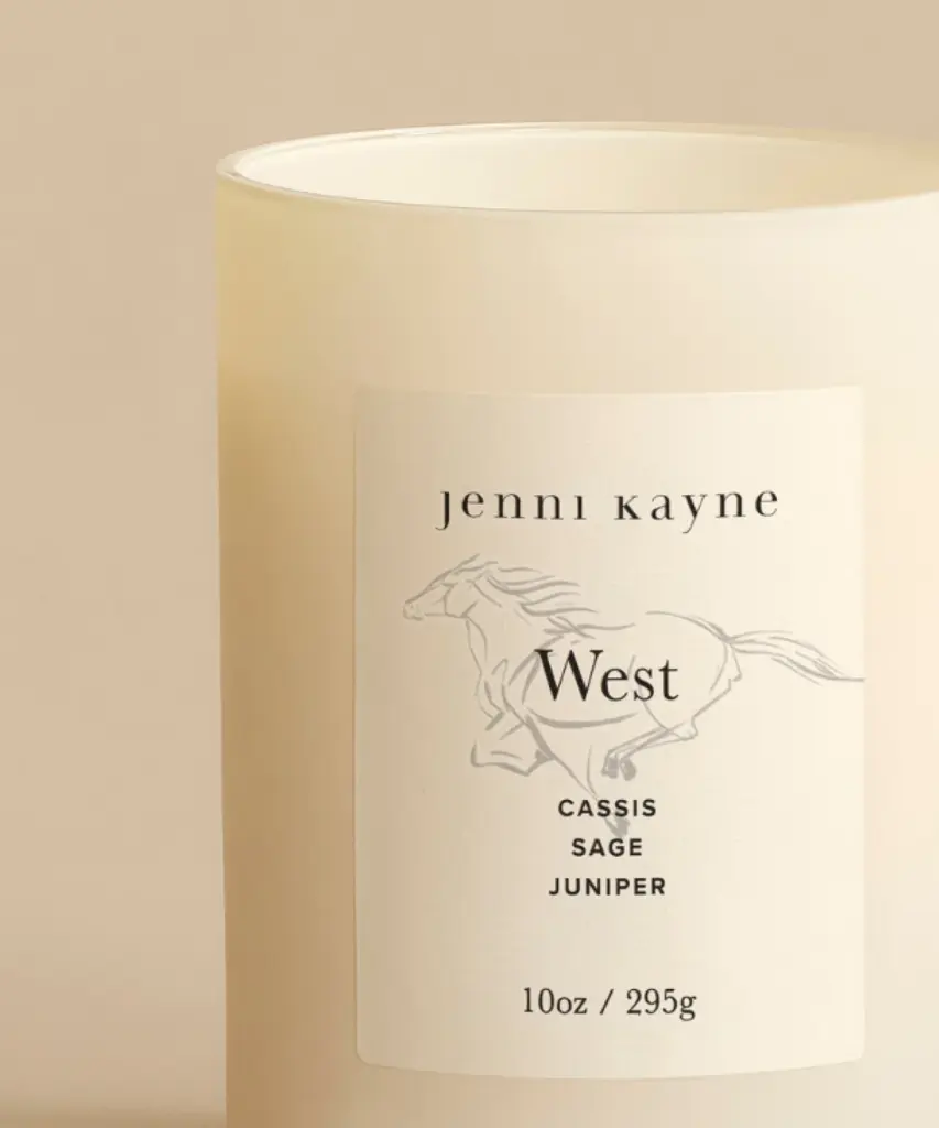 West Glass Candle Natural With notes of cassis, sage, and juniper, this earthy, stable-inspired scent celebrates the rich history of California’s native wildlife. For every candle sold, we will be donating $10 to the American Wild Horse Campaign, whose mission is to defend America’s wild horses and burros. Wax is a natural blend of coconut, soy, beeswax, apricot oil, and paraffin with a lead-free cotton wick. Burn Time: 50-70 hours To repurpose your glass candle vessel, simply remove the wick by adding a drop of boiling water, wait a few minutes and remove with pliers.