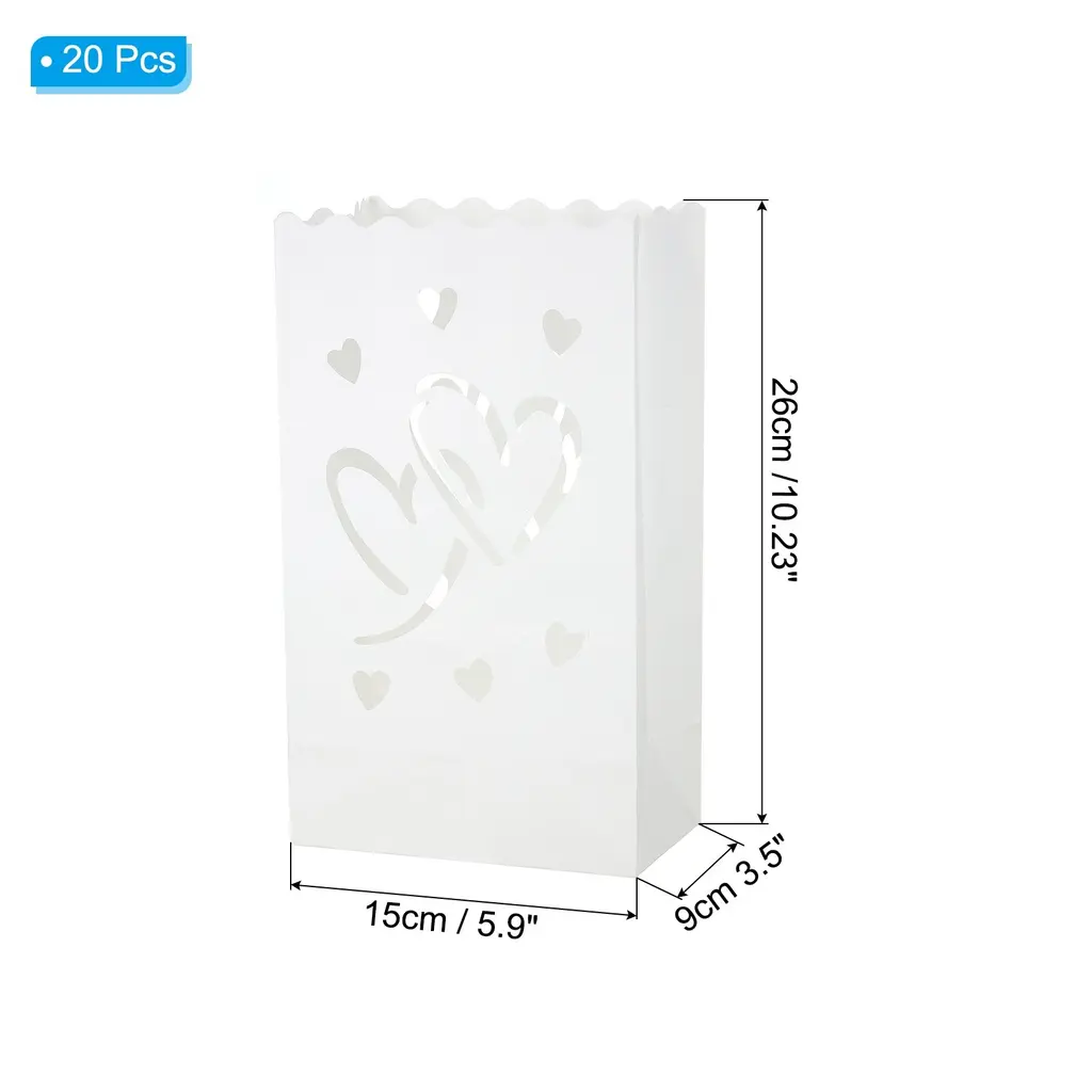 White Paper Luminary Bags, Heart Flame Resistant Candle Bags - 20 Pcs
