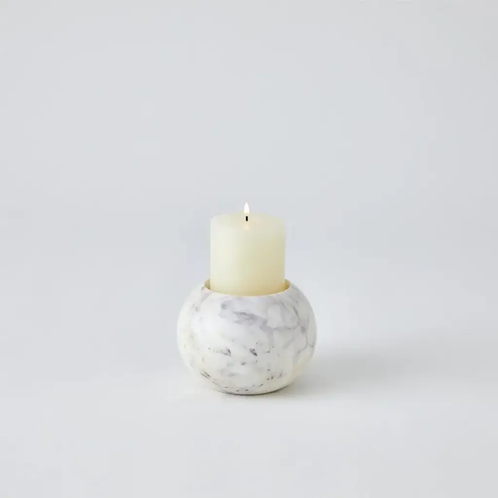 Unscented and unfussy, pure white pillar flickers with a fresh sophistication.