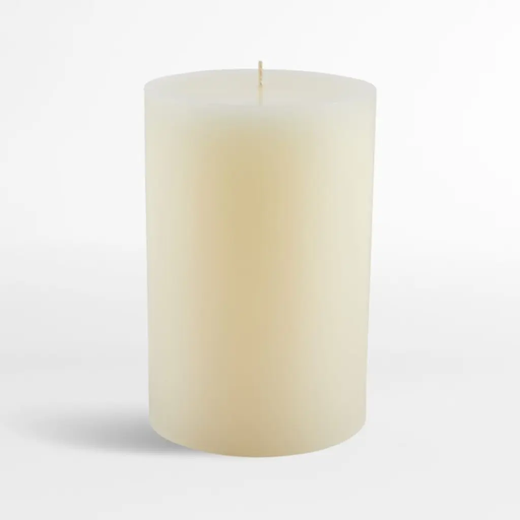 Tall and stately, this white pillar candle is the ideal addition to dramatic centerpieces and striking mantel displays. Place in the center of a wreath on the dining table, or group it with its shorter counterparts to create a tiered arrangement with serious sparkle. Unscented wax in classic white makes the large, long-burning pillar candle perfect for the table.