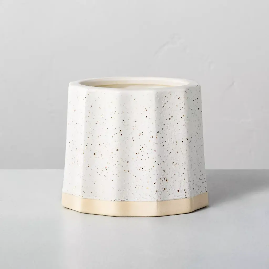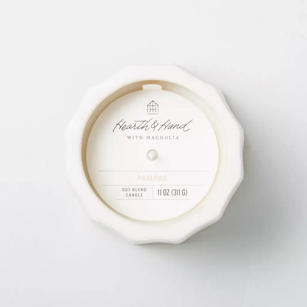 Keep your home feeling fresh and inviting with this Wide Fluted Speckled Ceramic Pampas Jar Candle from Hearth & Hand™ with Magnolia. Featuring an earthy and musky pampas grass fragrance, this ceramic container candle helps rejuvenate your senses while making sure your abode smells good at all times. Poured in a fluted cream ceramic container with allover tiny brown speckles and a cream-hue base, this scented jar candle adds a sweet decorative accent to your mantel, coffee table or foyer table. Celebrate the everyday with Hearth & Hand — created exclusively for Target in collaboration with Magnolia, a home and lifestyle brand by Chip & Joanna Gaines. Built upon our shared commitment to giving back to our communities, these pieces reveal the beauty of everyday moments shared with family and friends.