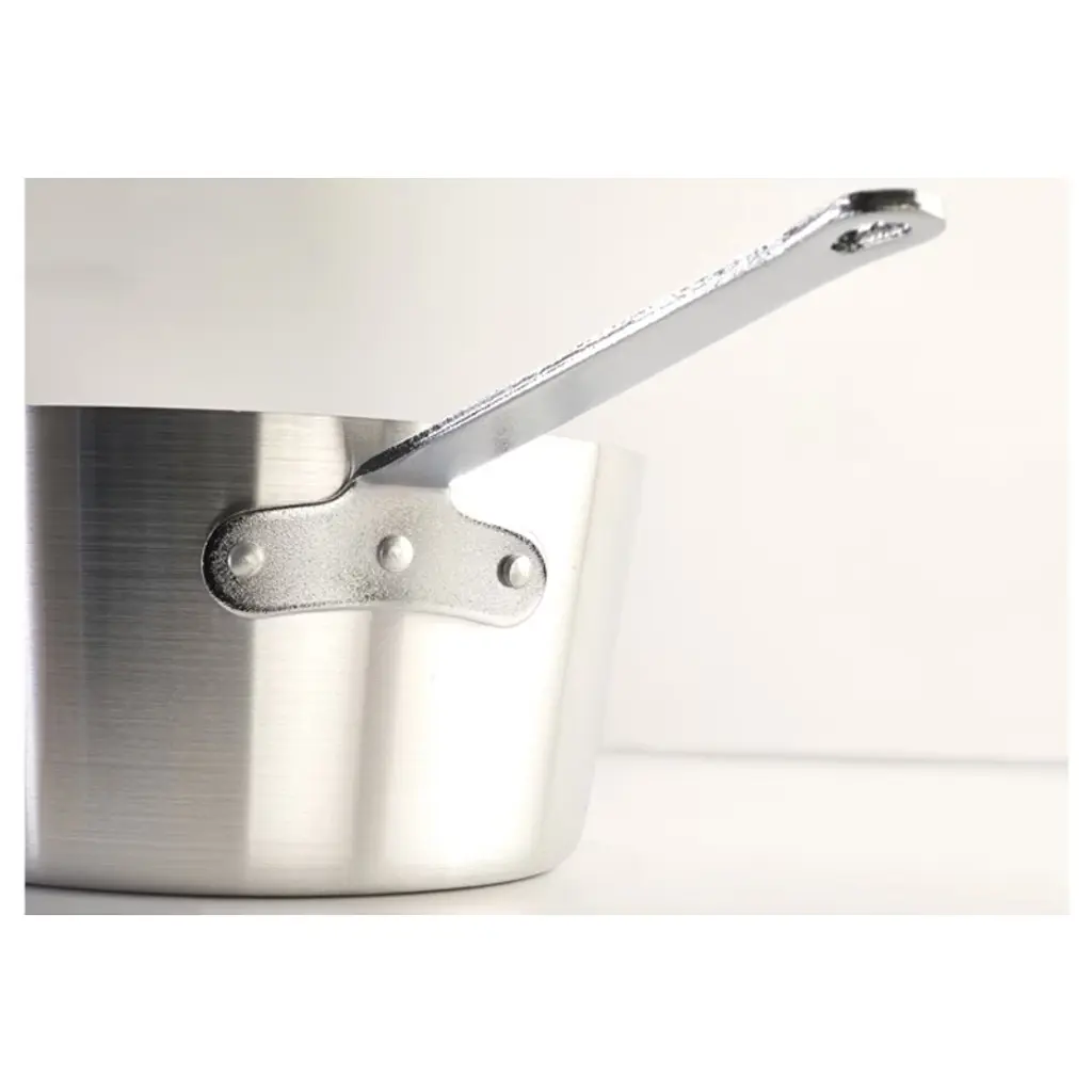 Make all your favorite sauces: hollandaise, becìhamel, caramel. This tapered aluminum sauce pan is just as useful when putting up soup, cooking rice, vegetables, and more. The tapered sauce pans have sloped sides and rounded corners for easy stirring and cleaning. The aluminum encapsulated base allows even heat distribution, making this aluminum tapered sauce pan an indispensable, versatile tool in every kitchen.