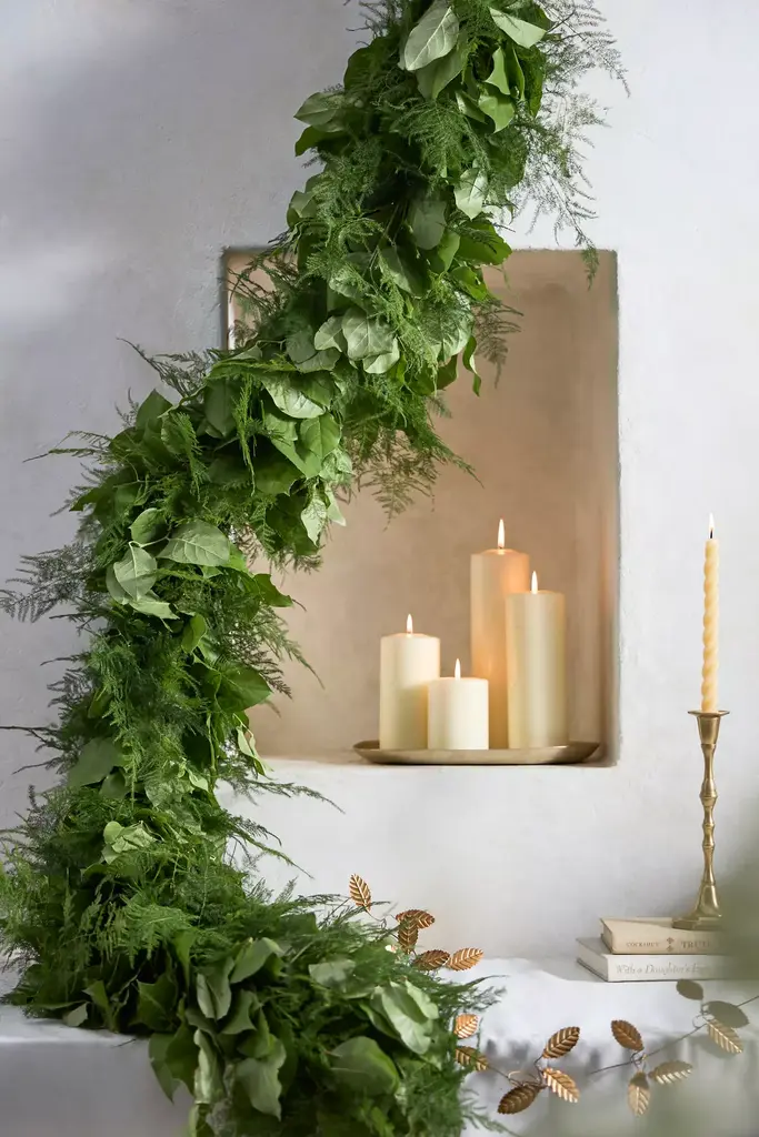 This lovely set of Woodland Flameless LED Candles has a unique bark design that is highlighted beautifully when lit. The graduated sizes have maximum impact when grouped together, or place them separately. They add plenty of ambiance and a soft glow to any space. The rustic design highlights your décor in any room of the home. Great all year, these candles would also make a beautiful holiday statement with greenery placed around them. Set includes 3 candles and remote control; can also turn on/off manually. Graduated heights: 5"H, 7"H and 9"H. Each takes 2 AA batteries, not included. Plastic with a real paraffin exterior.