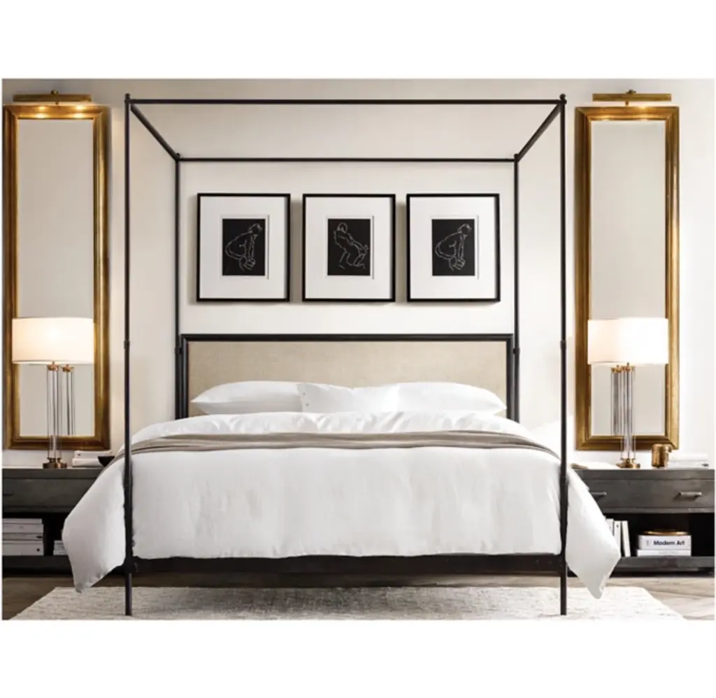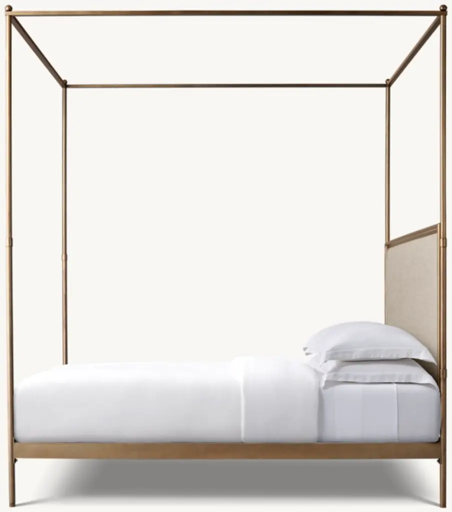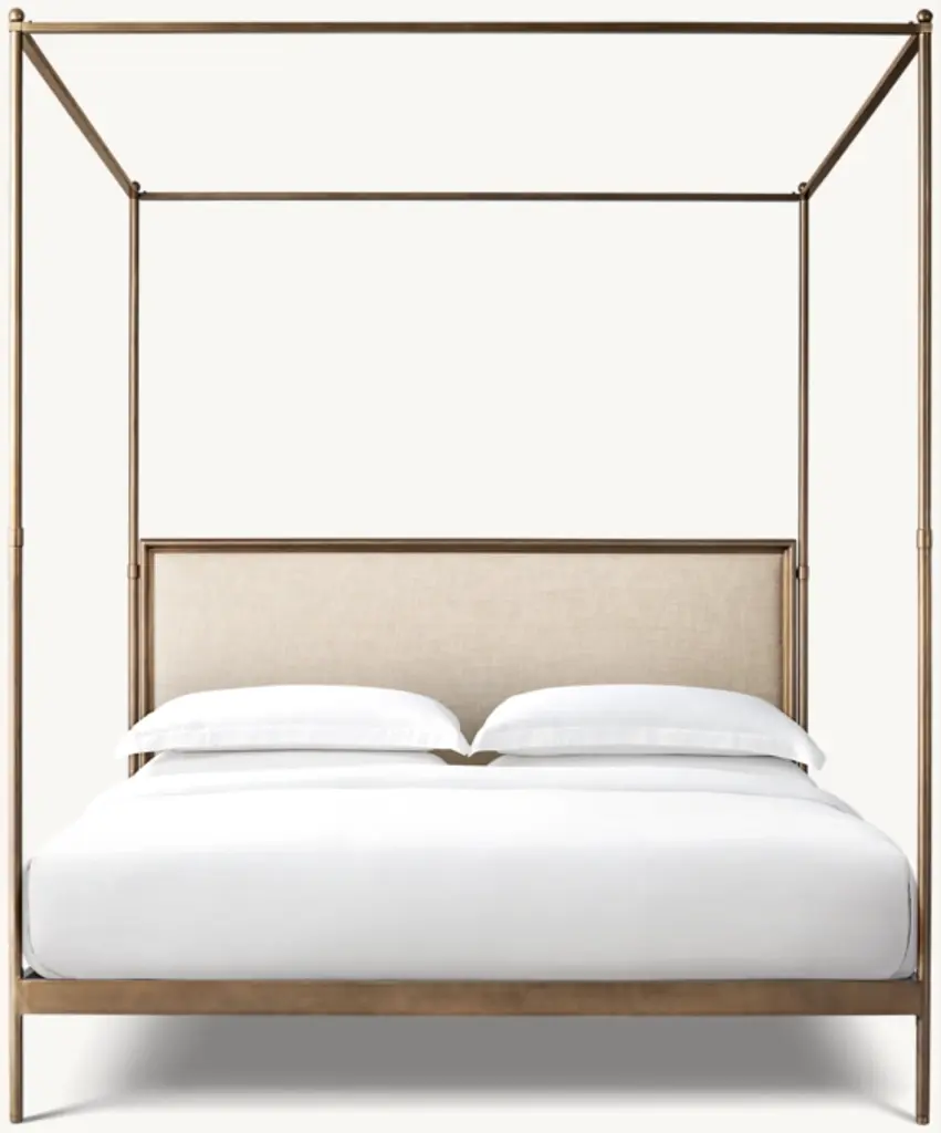 Commissioned by military officers to make life on the march as gracious as life at home, French campaign furniture merged elegant design with rugged portability. This canopy bed echoes the style of its 18th- and 19th-century predecessors with a linear silhouette, slender posts and an unadorned headboard.ALSO AVAILABLE IN LEATHERSHOP ALL MATTRESSES