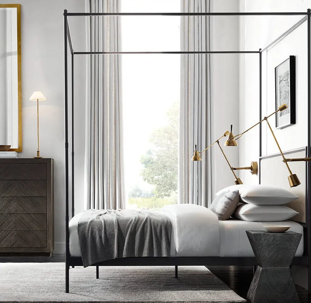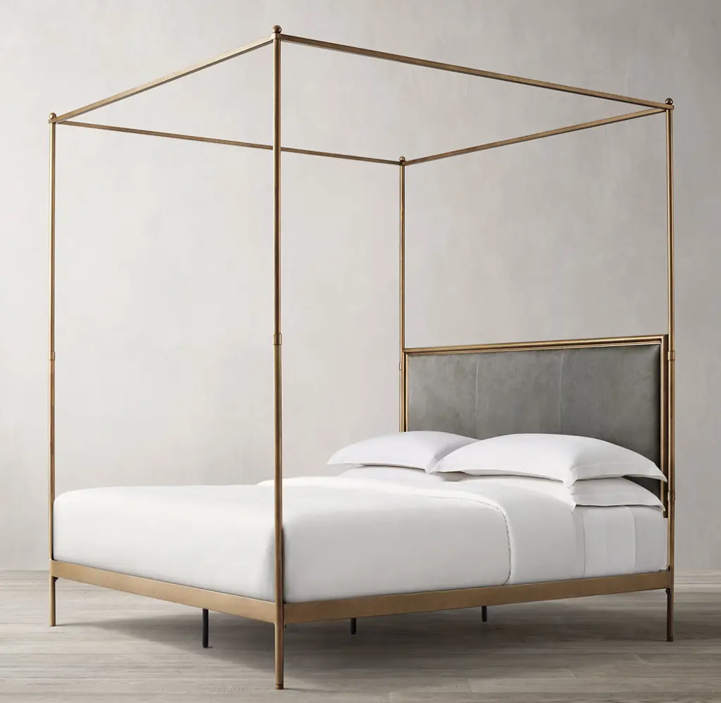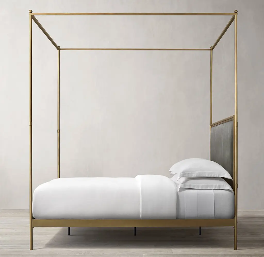 Commissioned by military officers to make life on the march as gracious as life at home, French campaign furniture merged elegant design with rugged portability. This canopy bed echoes the style of its 18th- and 19th-century predecessors with a linear silhouette, slender posts and an unadorned headboard. ALSO AVAILABLE IN FABRIC SHOP AIRELOOM® MATTRESSES