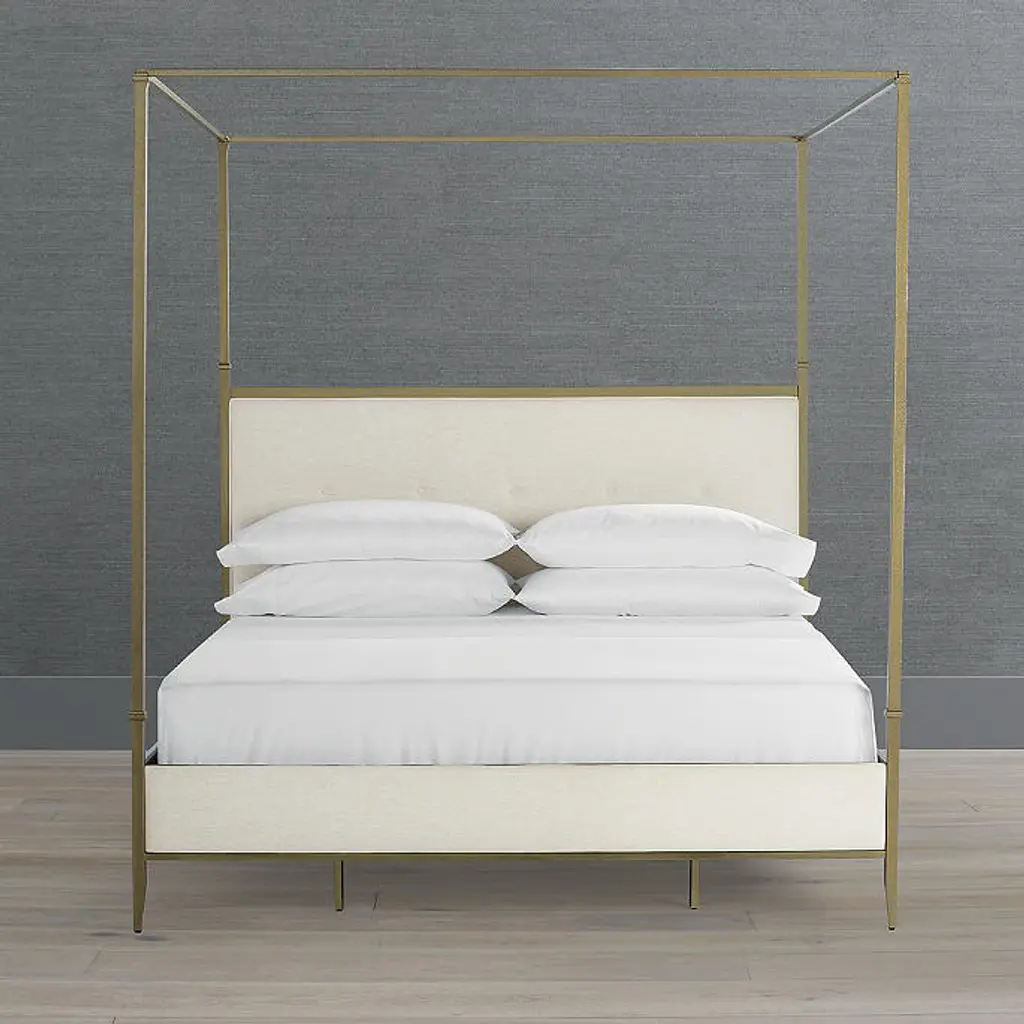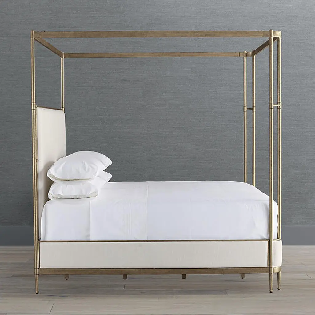 Taking inspiration from French antiques, our Angelina Canopy Bed is a celebration of neoclassical style. Upholstered floating headboard, gentle wrap-around footboard and siderails bring a streamlined softness to the low-profile metal frame. A four-poster canopy style enhances this bedroom focal point. Iron frame and canopy Four metal support slats Ivory Linen Parks Performance Fabric Performance fabric resists stains and repels water and oils, ensuring easy cleaning To prevent injuries or damage to item, recommended team lift (two or more people) for furniture placement Designed to be used with a mattress and box spring Queen Bed assembly required King Bed assembly required Imported A Frontgate exclusive. At Frontgate, our primary focus is quality. We guarantee that every product we sell will stand up to the supreme test – our customers' satisfaction. To learn more about our policies, visit our Shipping & Processing, Returns & Exchanges and Warranty & Price Guarantee pages. Taking inspiration from French antiques, our Angelina Canopy Bed is a celebration of neoclassical style. Upholstered floating headboard, gentle wrap-around footboard and siderails bring a streamlined softness to the low-profile metal frame. A four-poster canopy style enhances this bedroom focal point. Iron frame and canopy Four metal support slats Ivory Linen Parks Performance Fabric Performance fabric resists stains and repels water and oils, ensuring easy cleaning To prevent injuries or damage to item, recommended team lift (two or more people) for furniture placement Designed to be used with a mattress and box spring Queen Bed assembly required King Bed assembly required Imported A Frontgate exclusive. At Frontgate, our primary focus is quality. We guarantee that every product we sell will stand up to the supreme test – our customers' satisfaction. To learn more about our policies, visit our Shipping & Processing, Returns & Exchanges and Warranty & Price Guarantee pages.