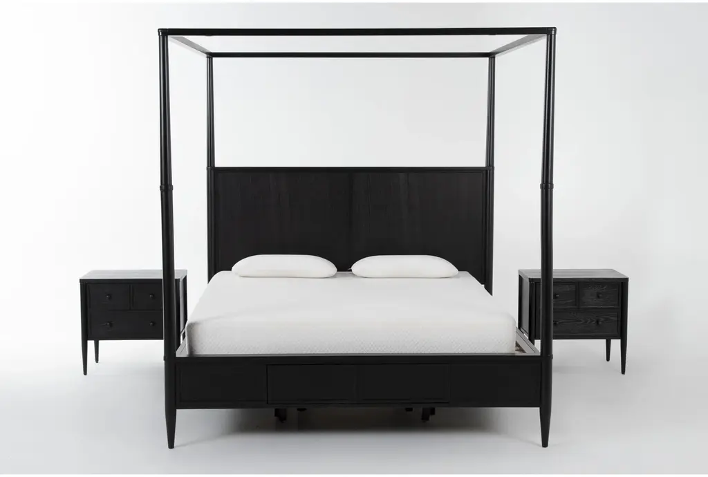 Austen Black Full Footboard Storage Wood Platform Canopy Bedroom Set With 1-Drawer & 3-Drawer Nightstands | Poster